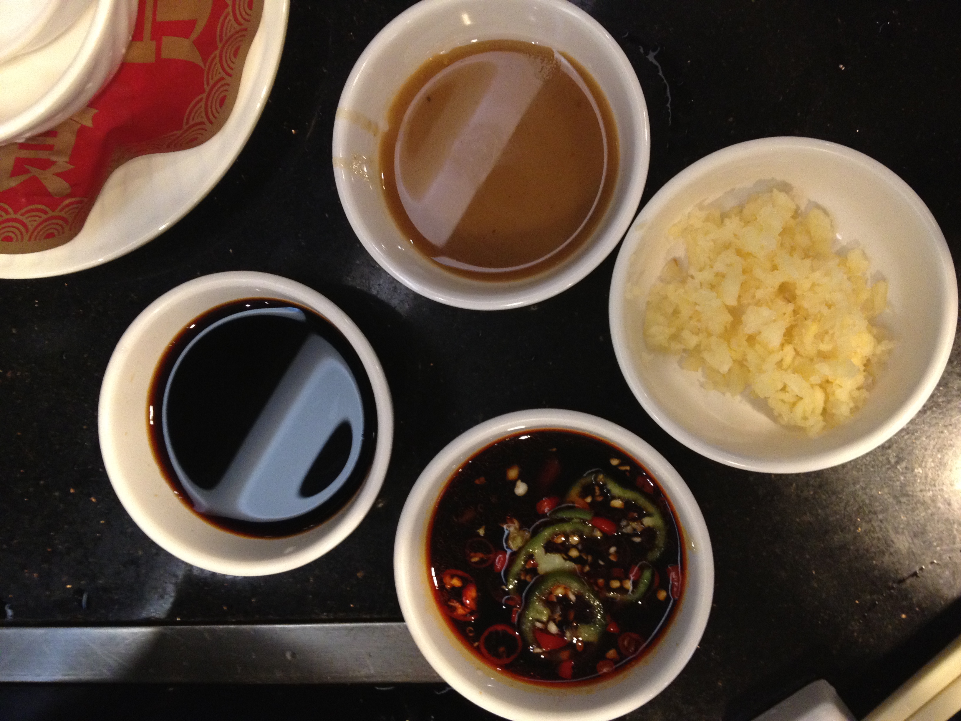 芝麻醬、豉油、生蒜蓉、剁椒汁青紅椒粒豉油