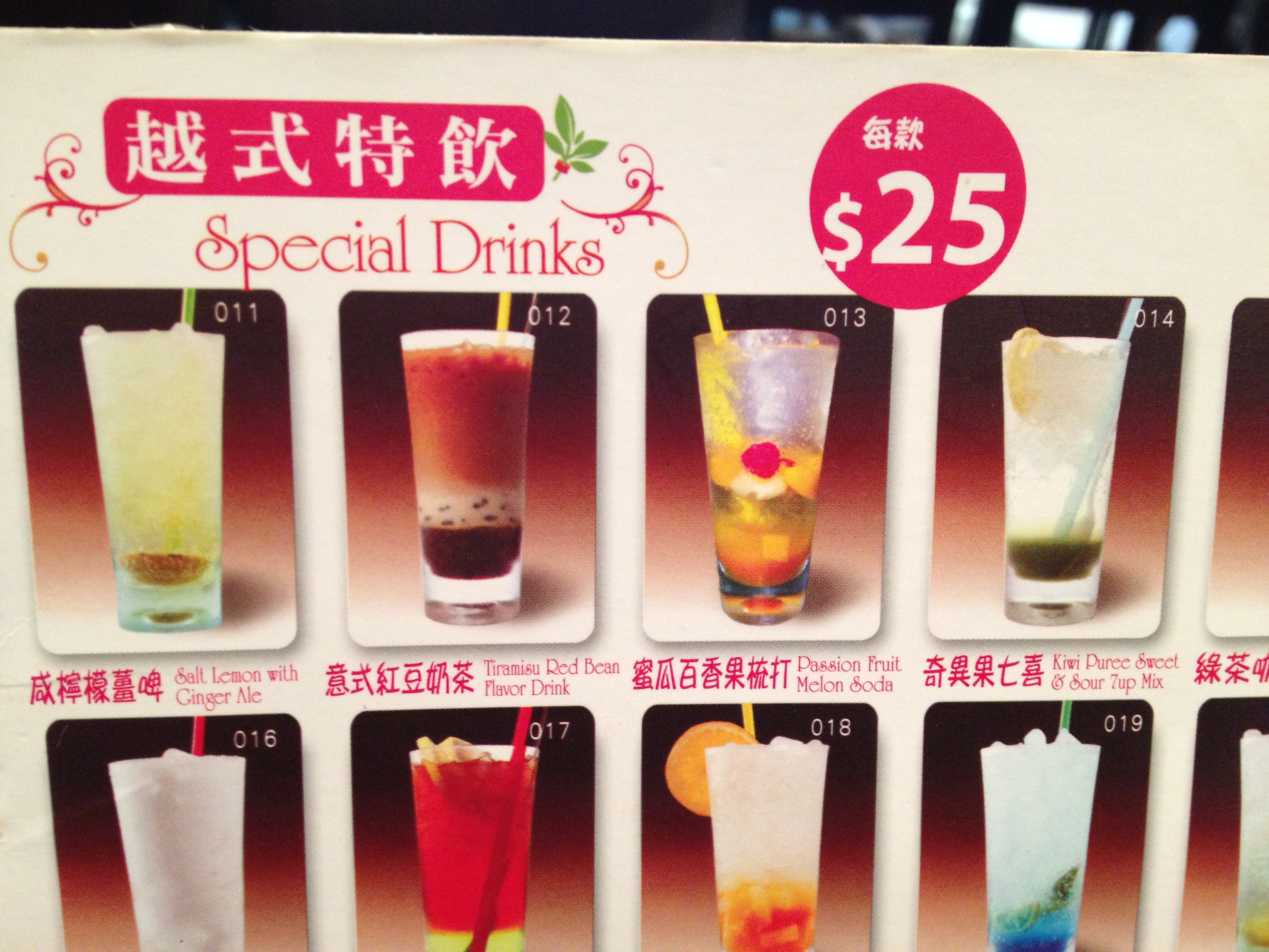 特飲餐牌