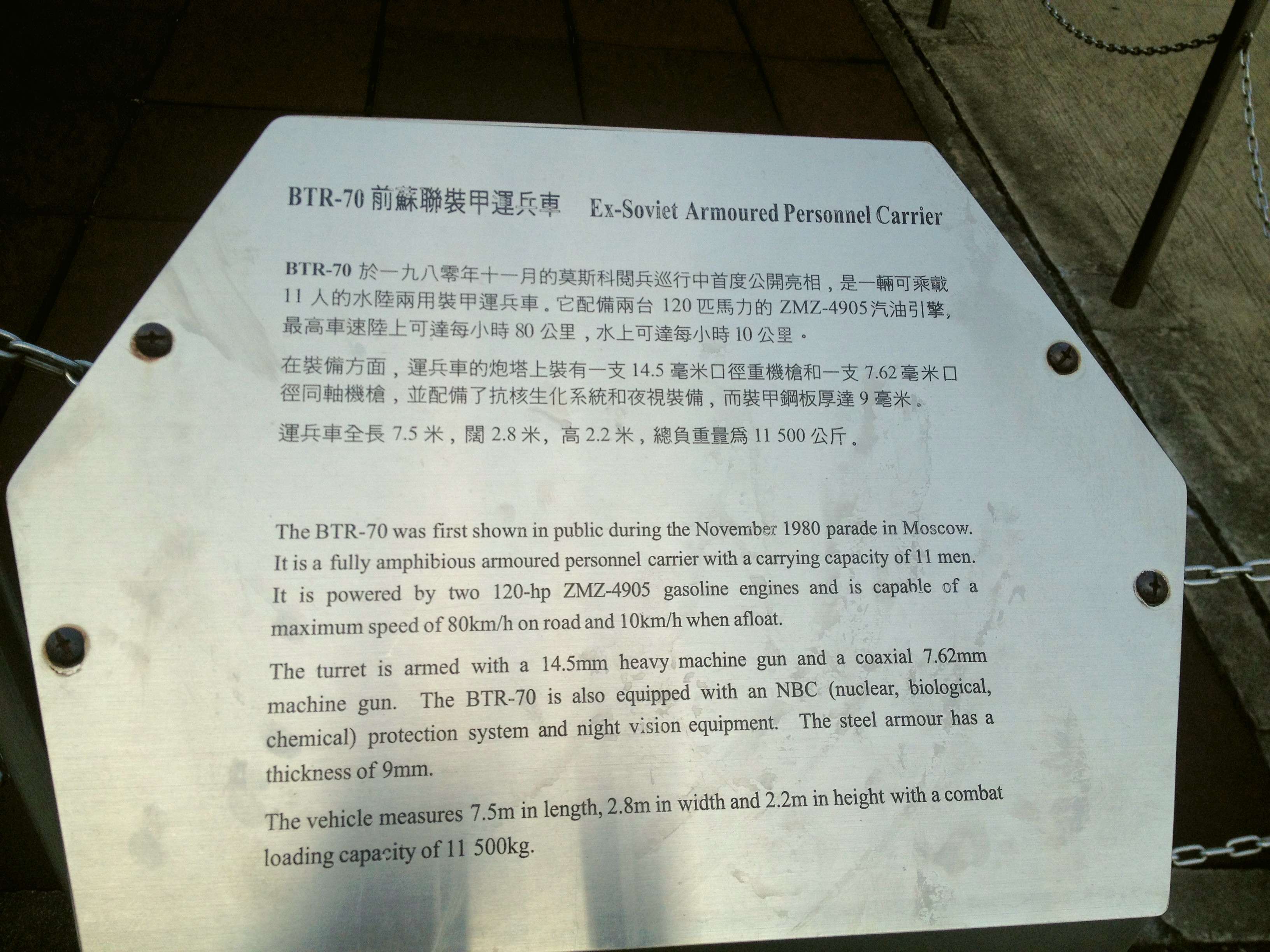 十座康樂大樓、BTR-70前蘇聯裝甲運兵車