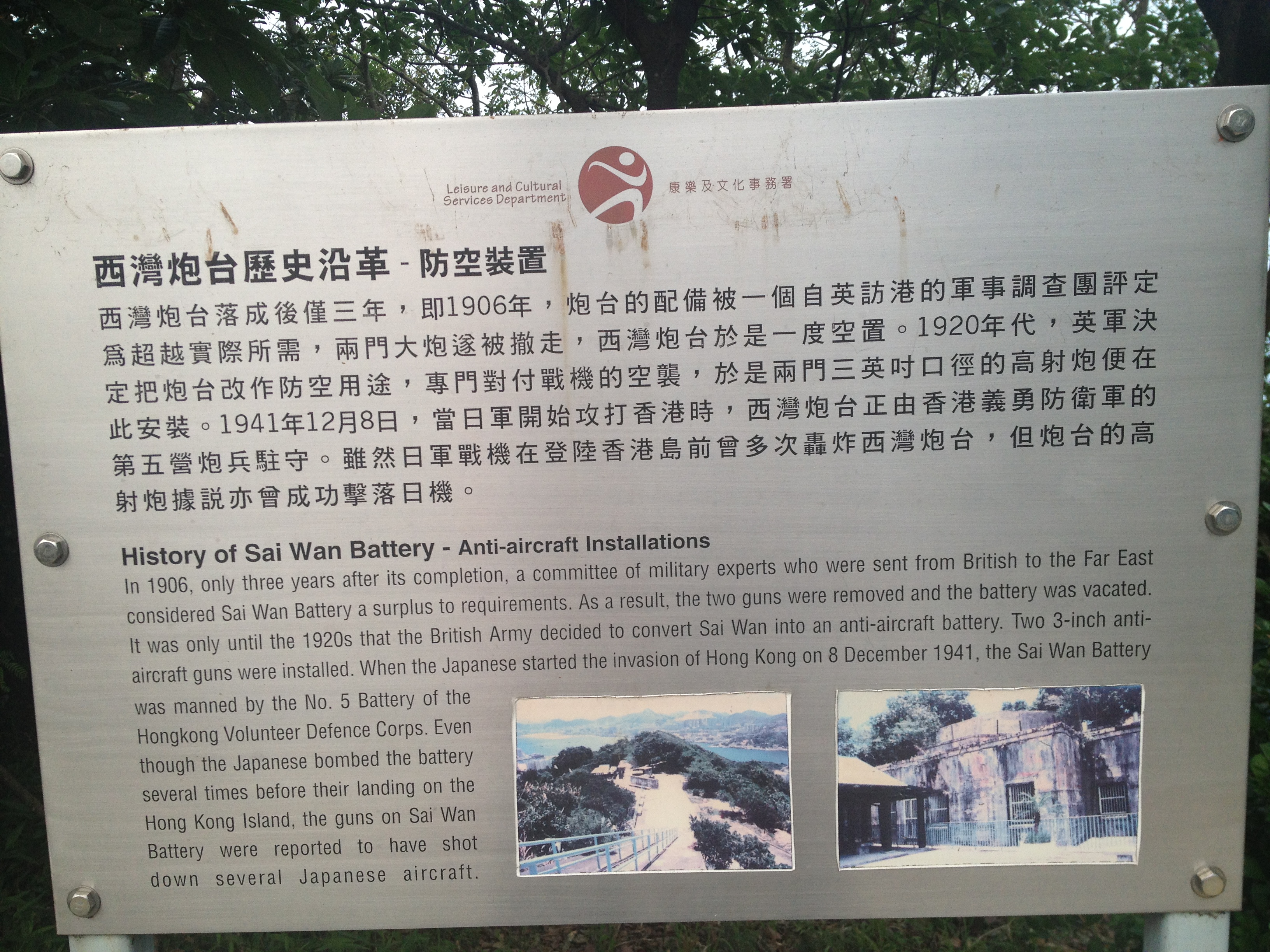 西灣炮台歷史沿革: 防空裝置