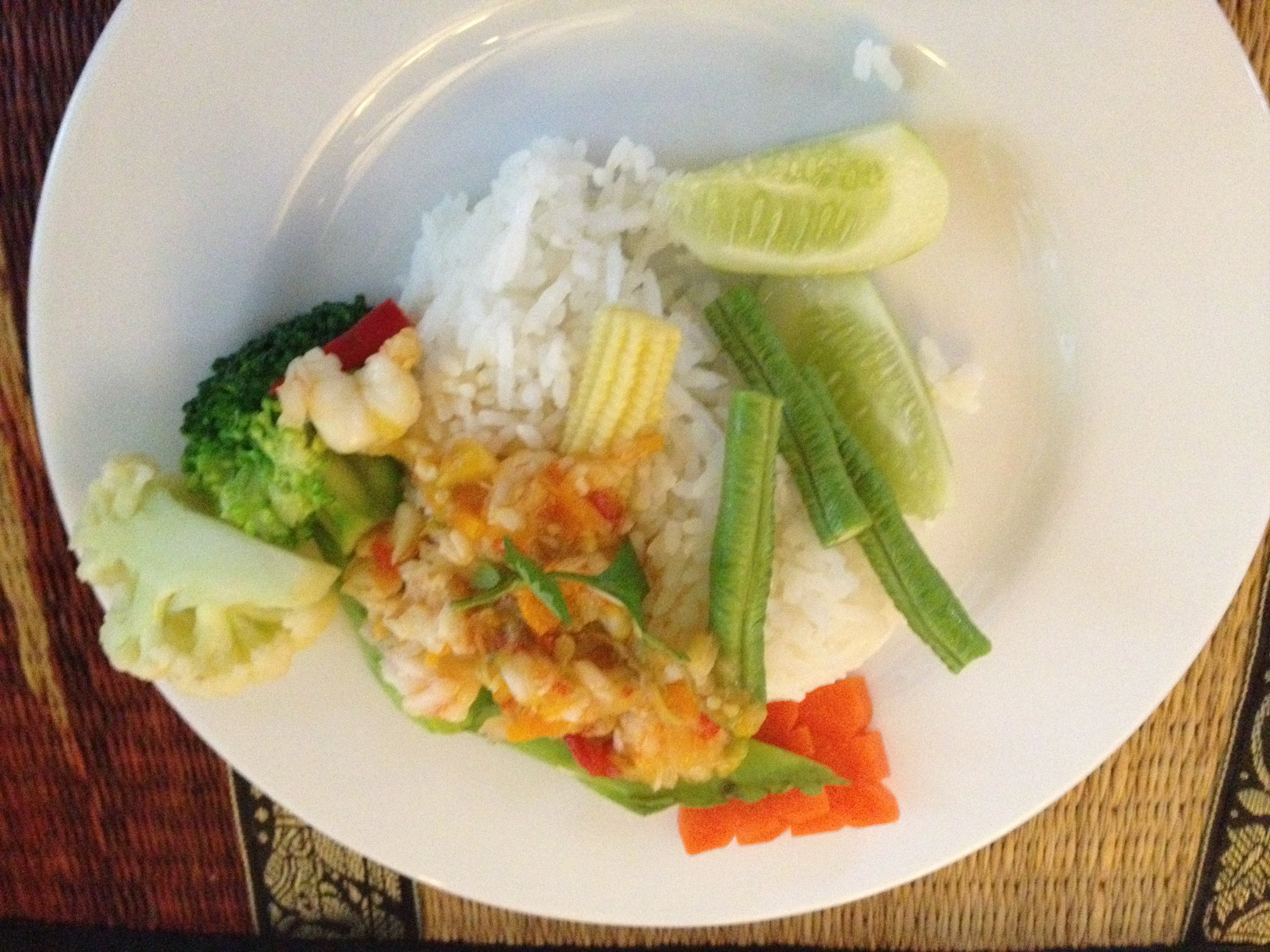 ![]() Green curry chicken on rice |