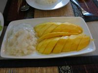 ![]() Mango sticky rice topped with coconut milk |