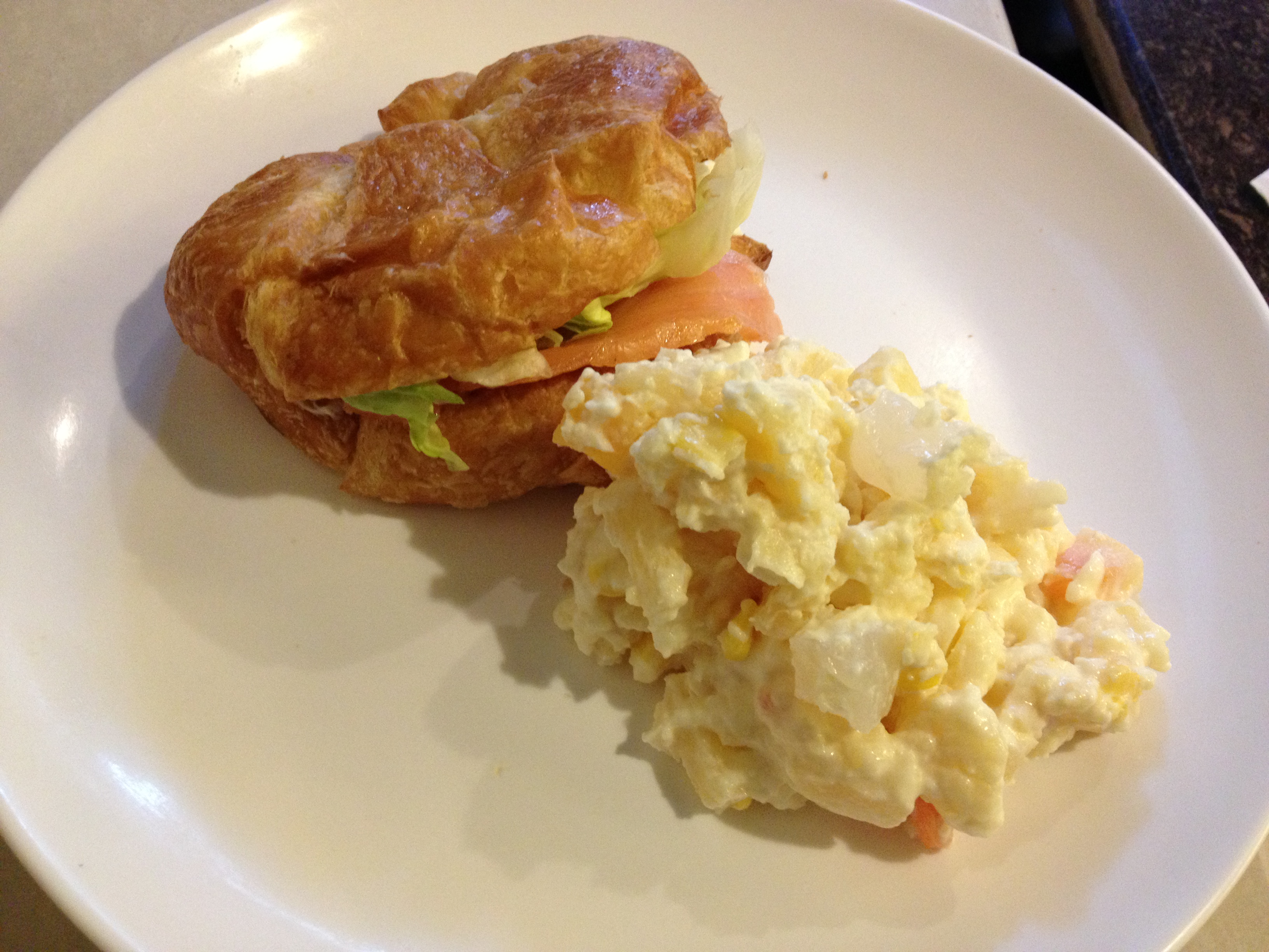 煙三文魚碎蛋牛角包配沙律