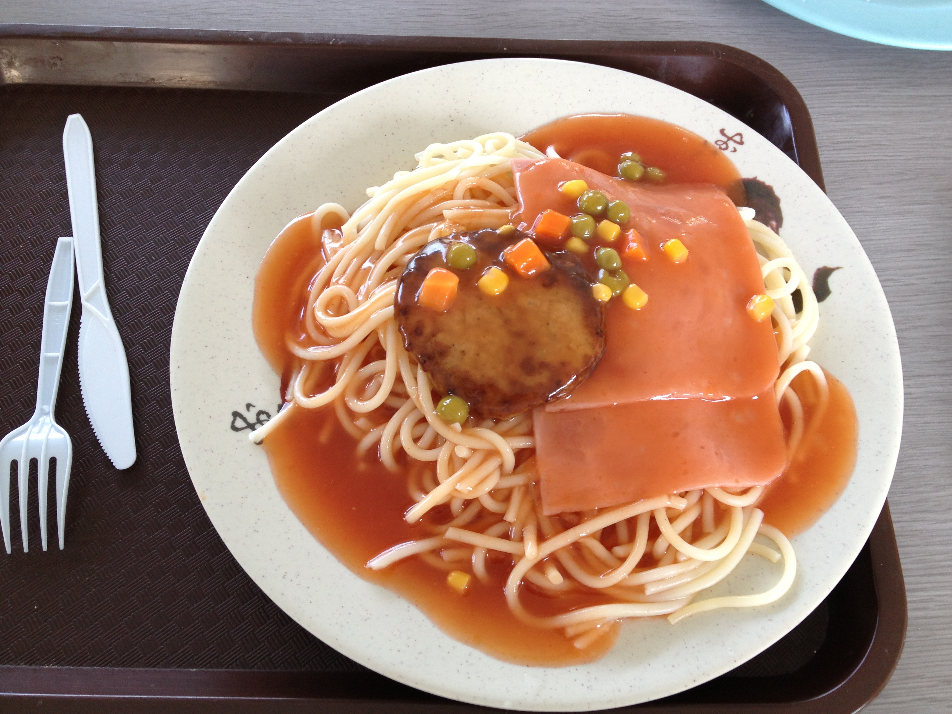 茄汁漢堡火腿意粉