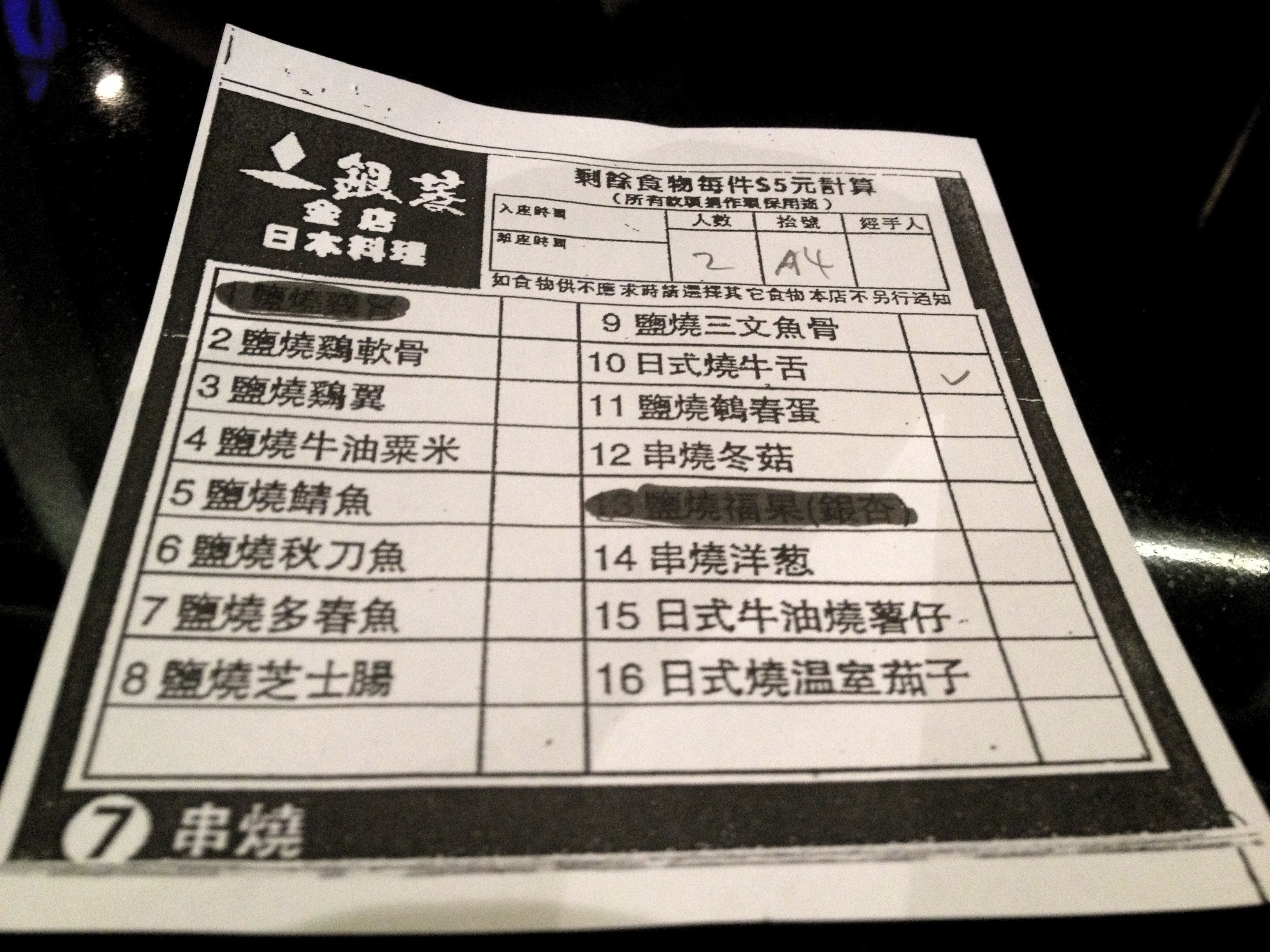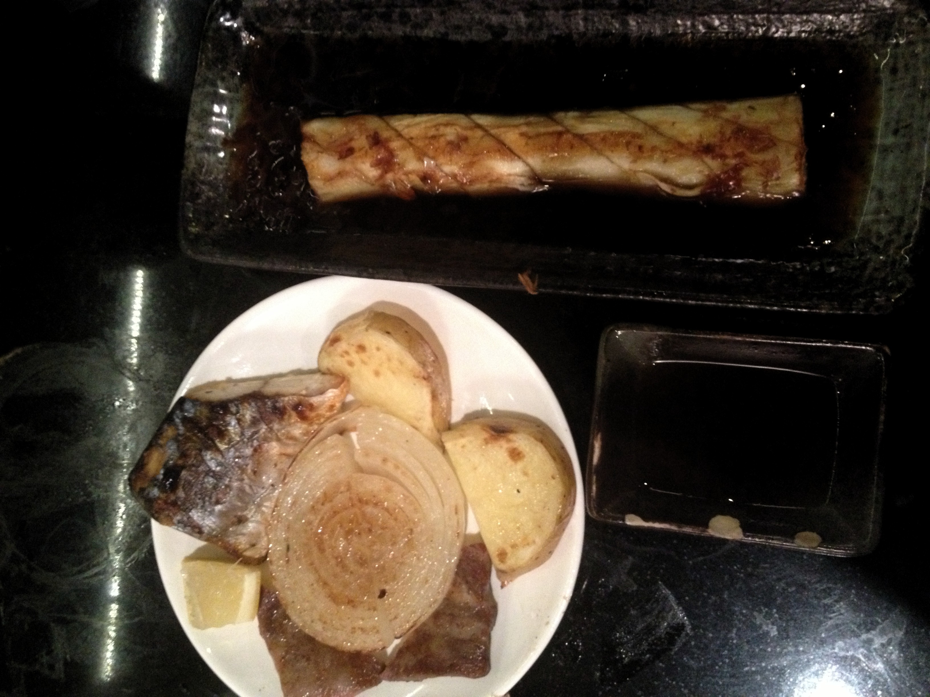 日式燒溫室茄子、鹽燒鯖魚、日式燒牛舌、日式牛油燒薯仔、串燒洋蔥