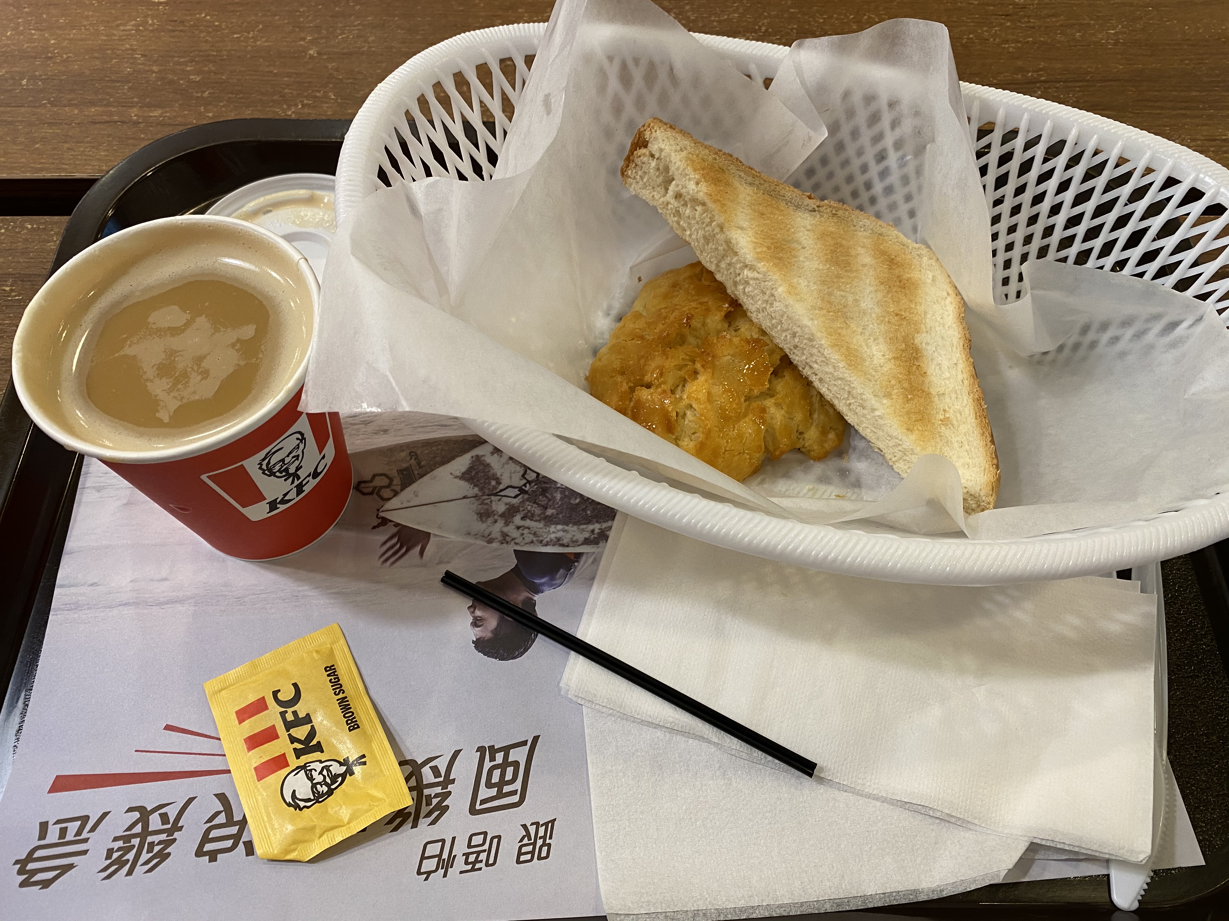 大埔超級城 KFC: 香蜜鬆餅+牛油多士餐配熱咖啡