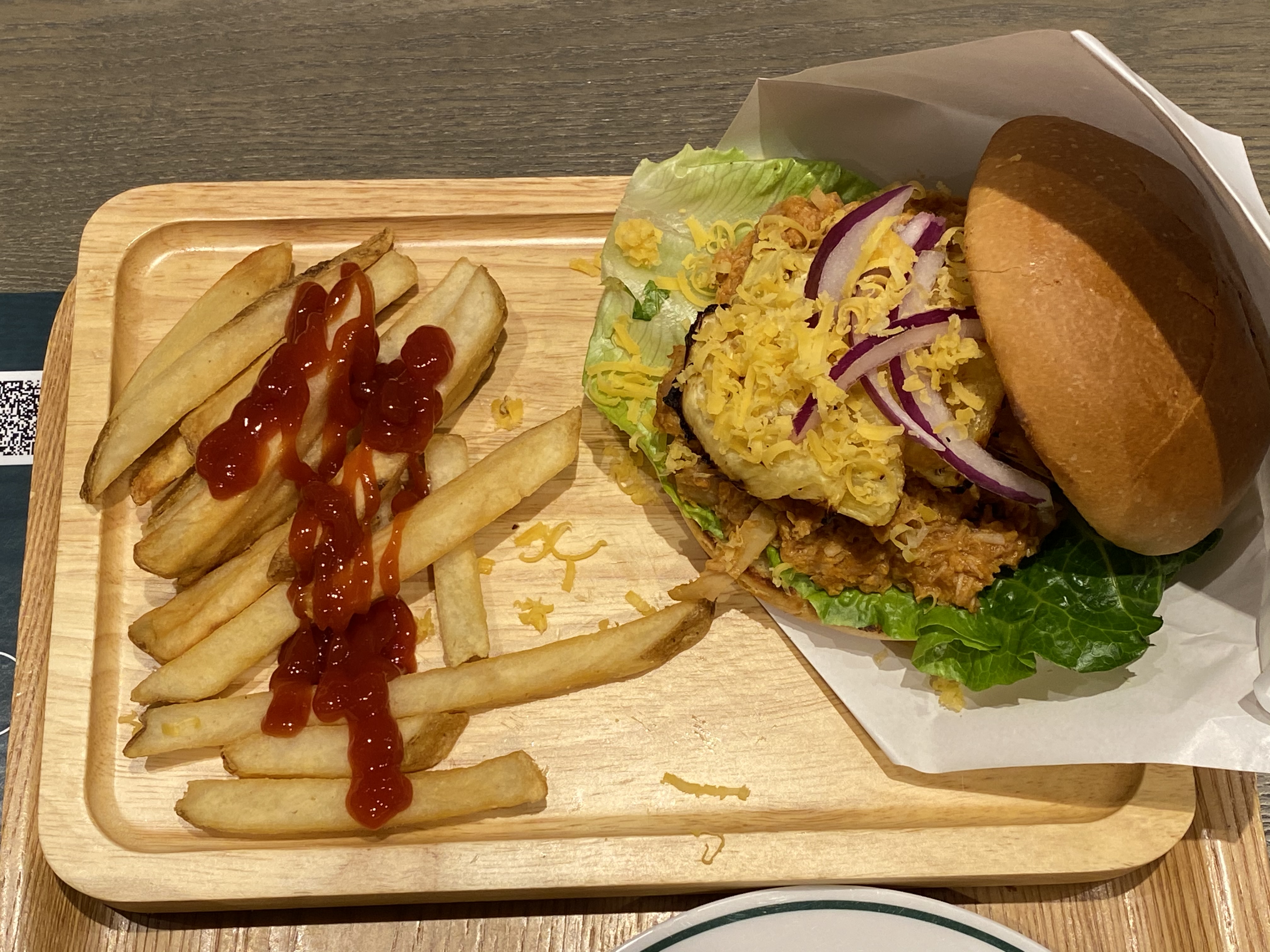 燒烤汁雞肉、鮮菠蘿、車打芝士漢堡配薯條