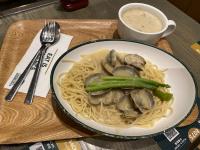 蜆肉蘆筍意大利麵配青檸忌廉汁、忌廉湯