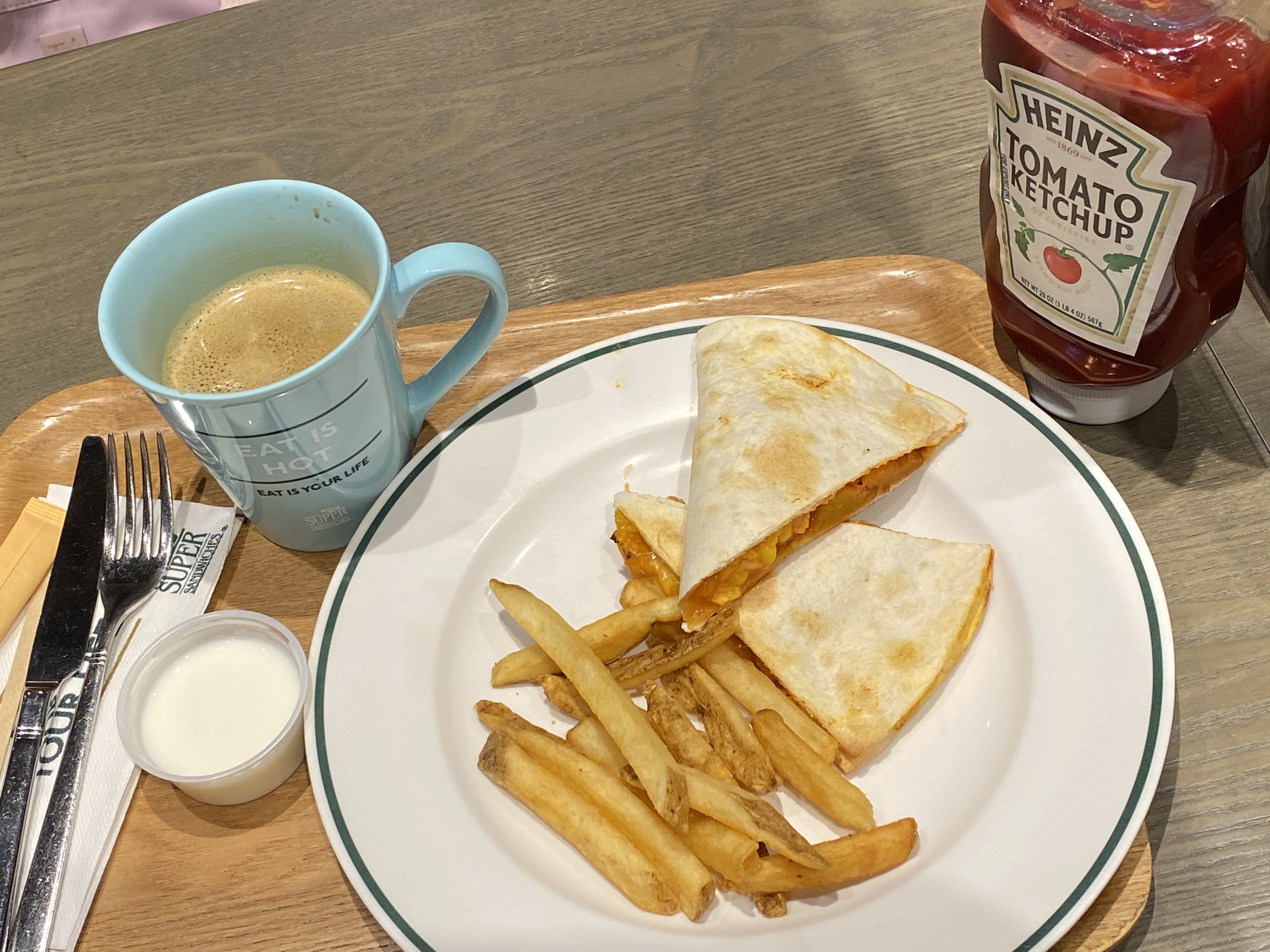 南瓜粟米芝士墨西哥薄餅、薯條、熱即磨咖啡