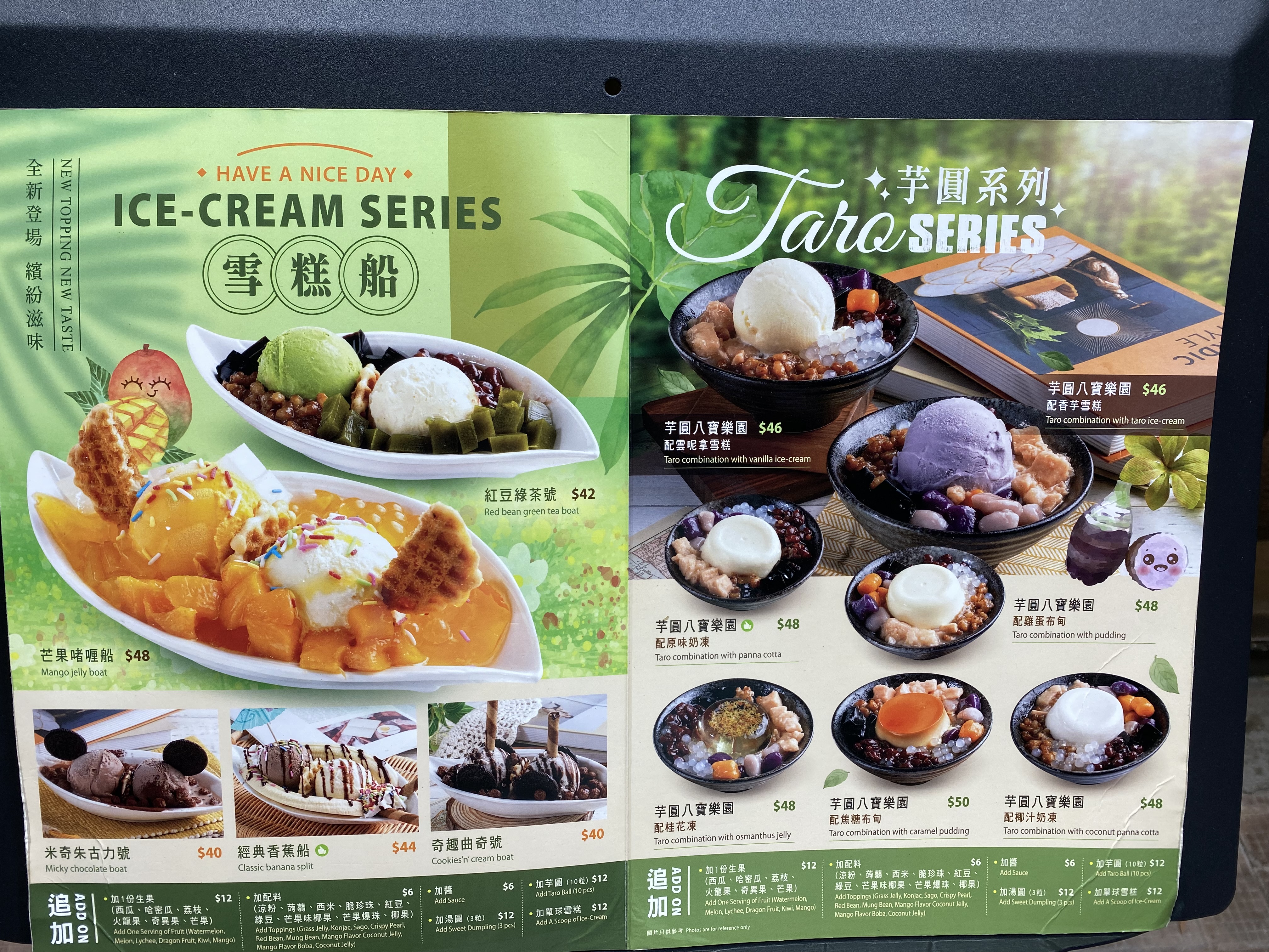 芋圓系列餐牌