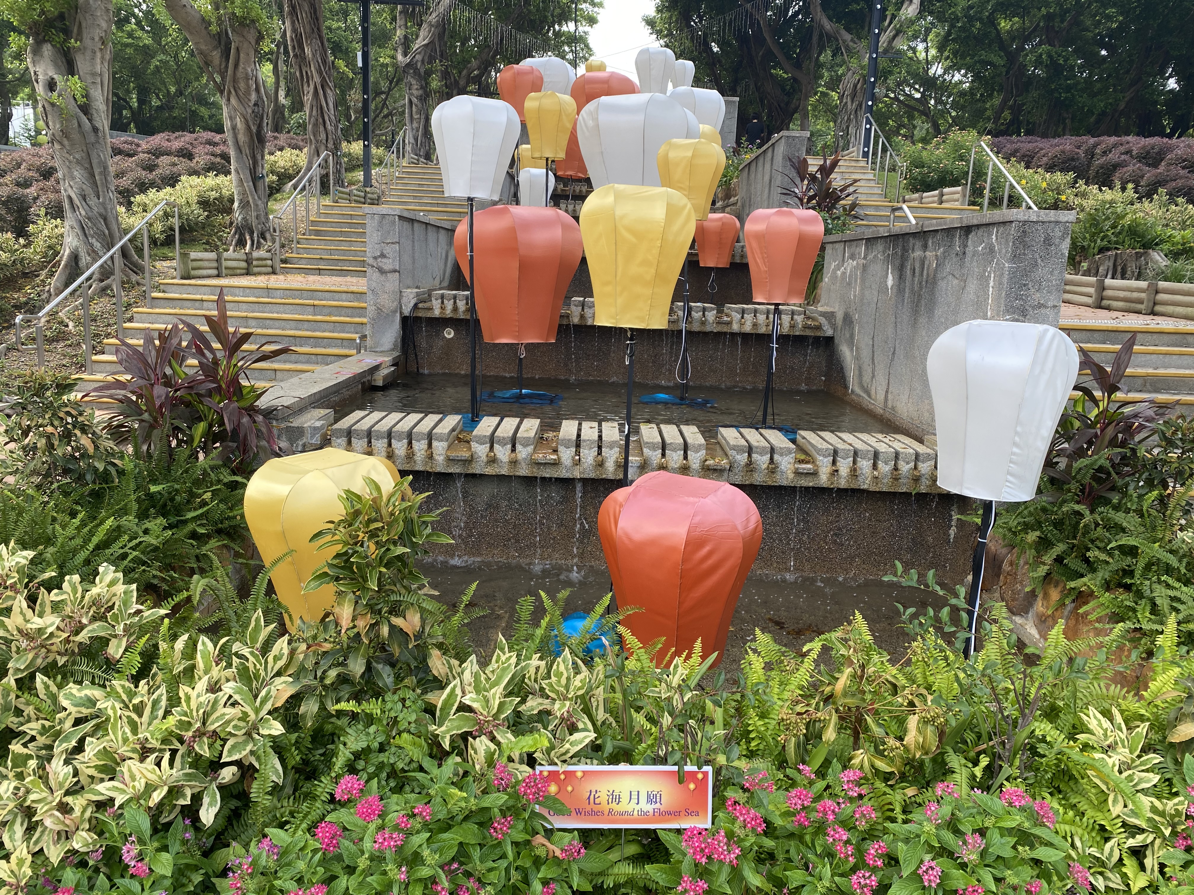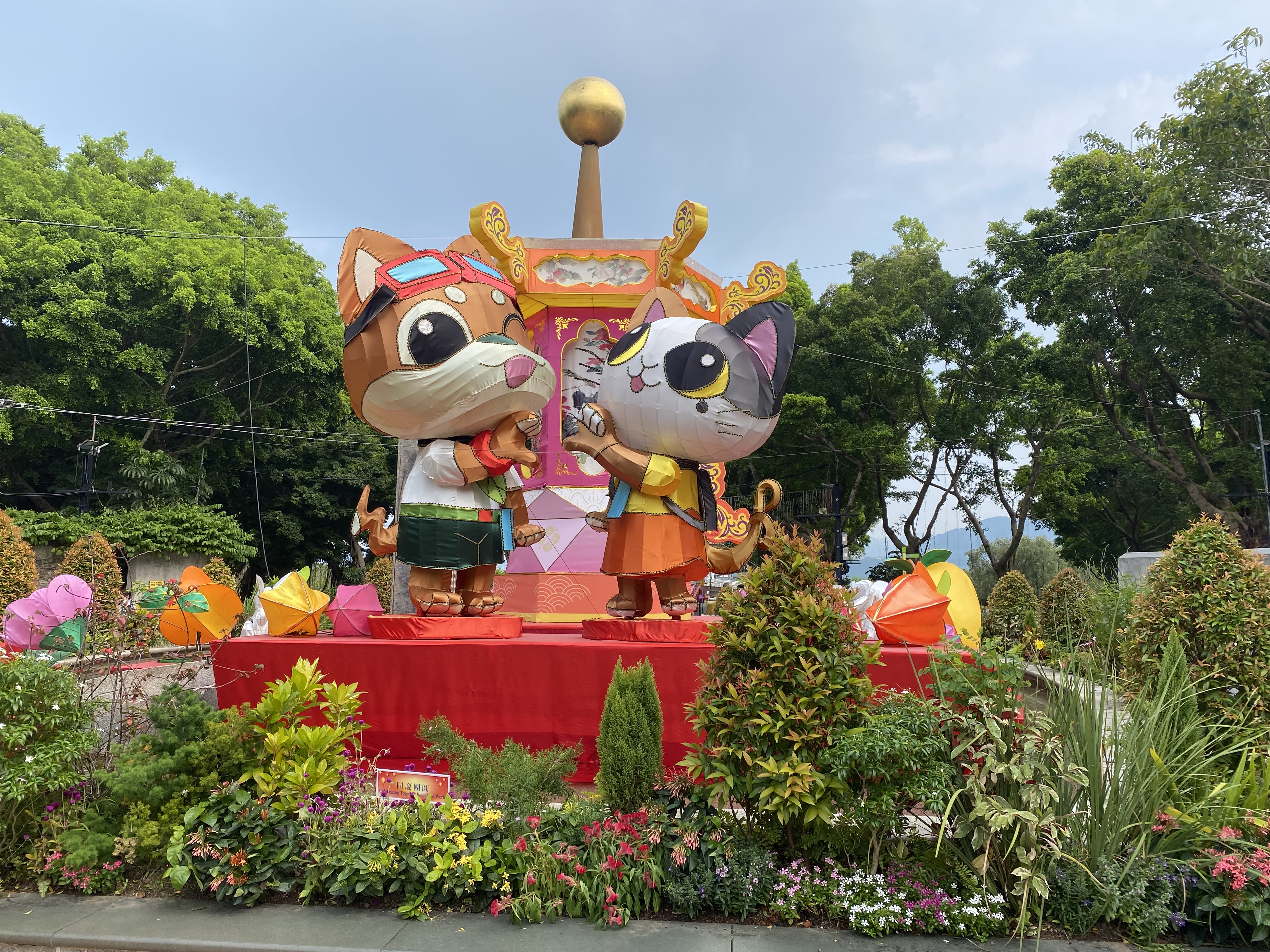 「活力仔」、「思文喵」(康文署吉祥物)、花海、香港回歸紀念塔