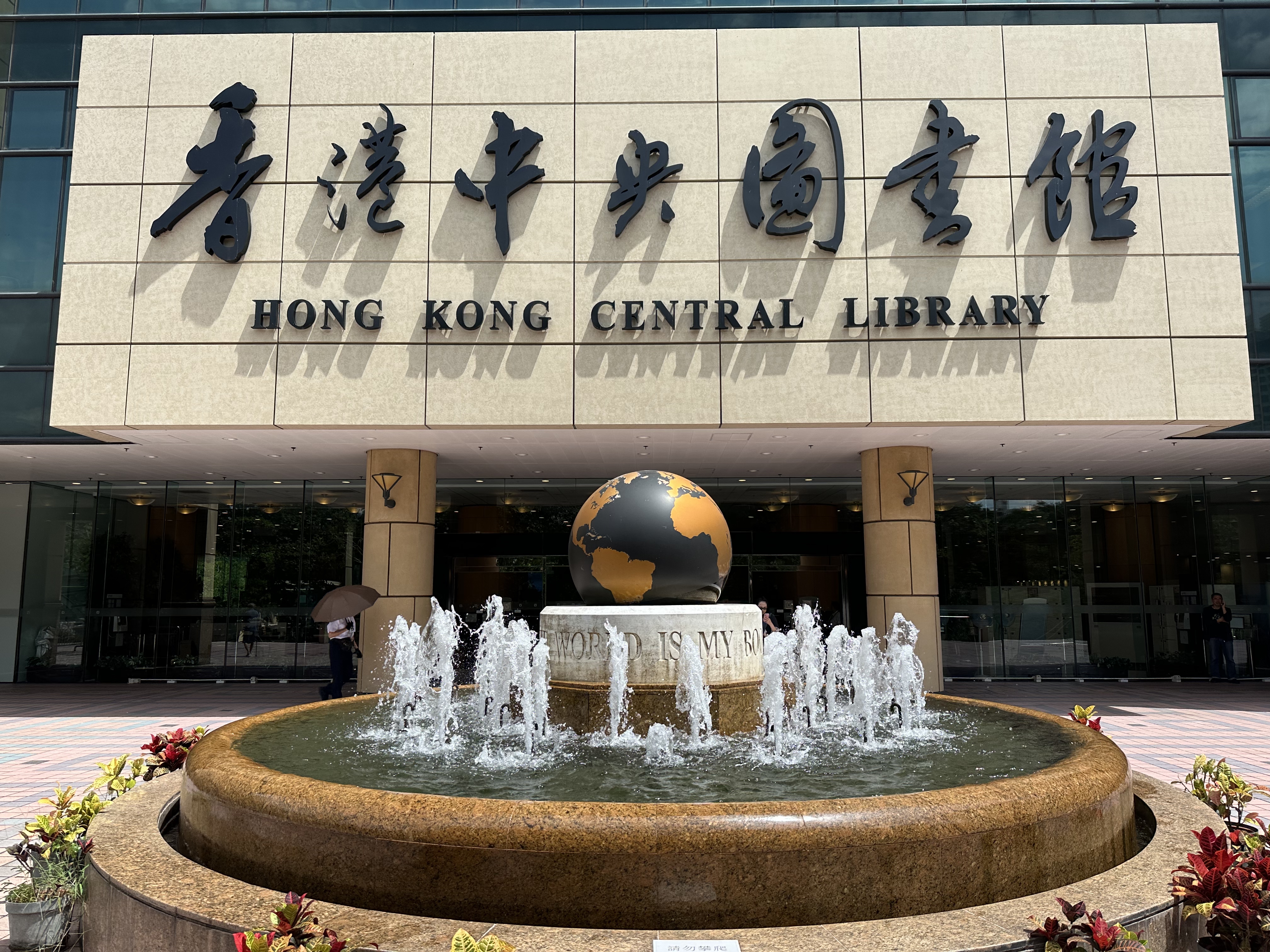 香港中央圖書館前: 噴水池、地球