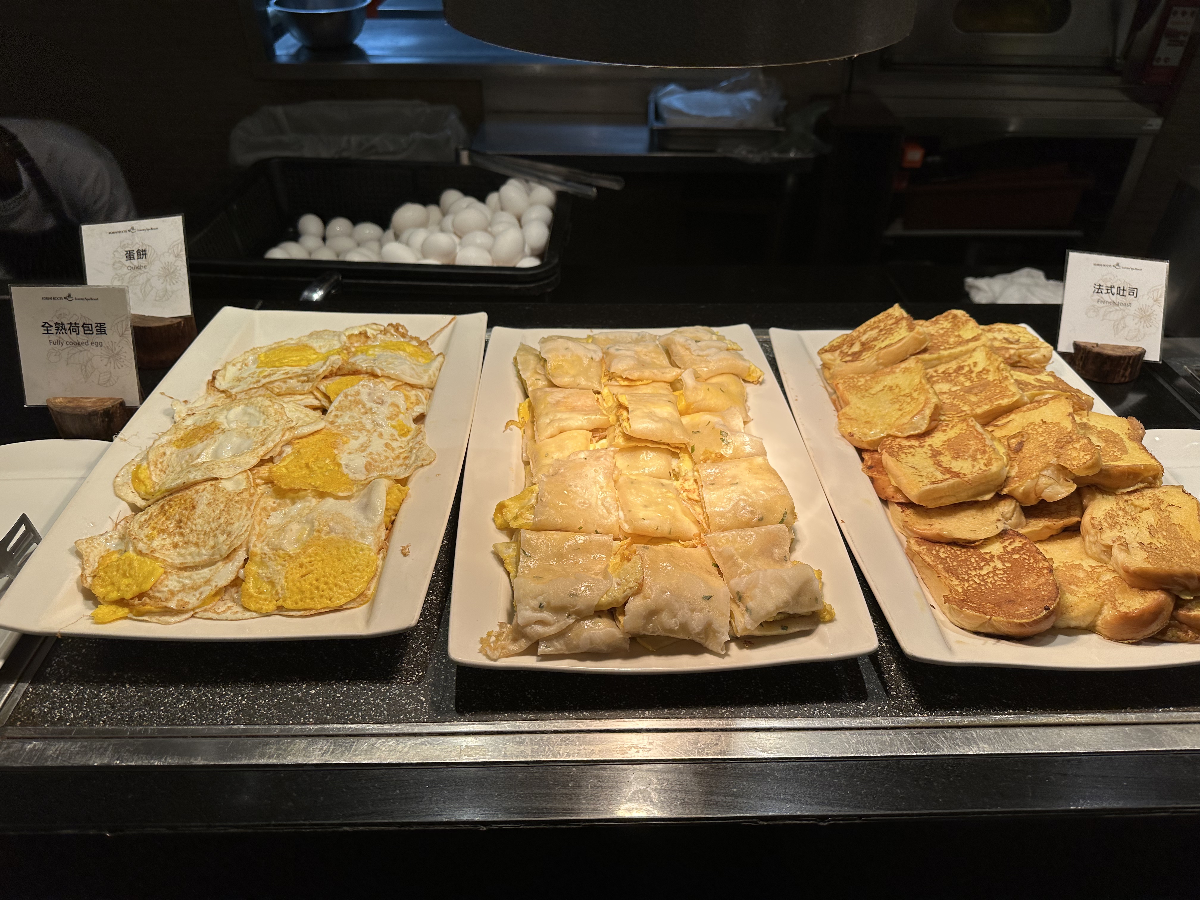 法式吐司、全熟荷包蛋、蛋餅