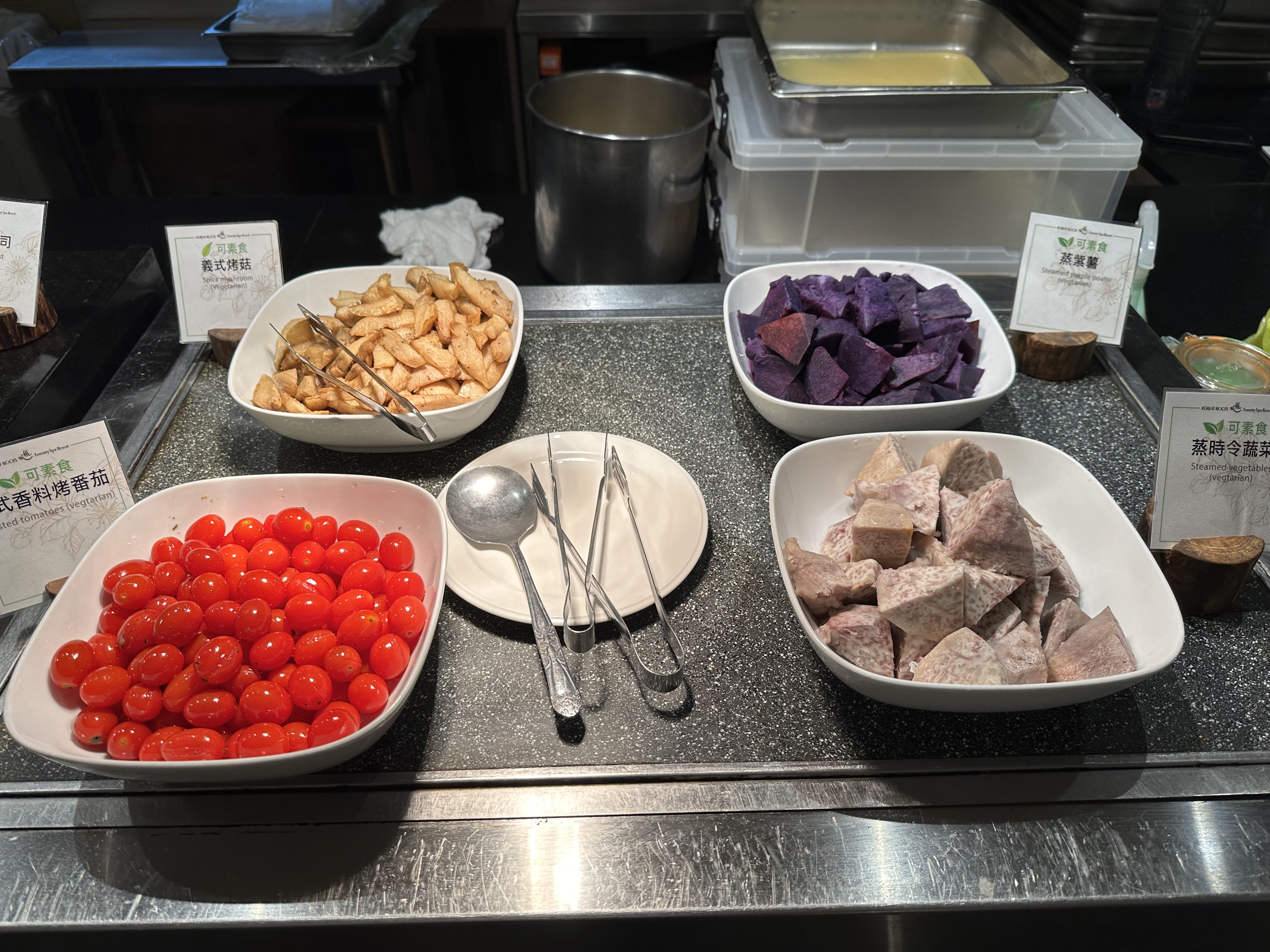 香料烤番茄、義式烤菇、蒸紫薯、蒸時令蔬菜