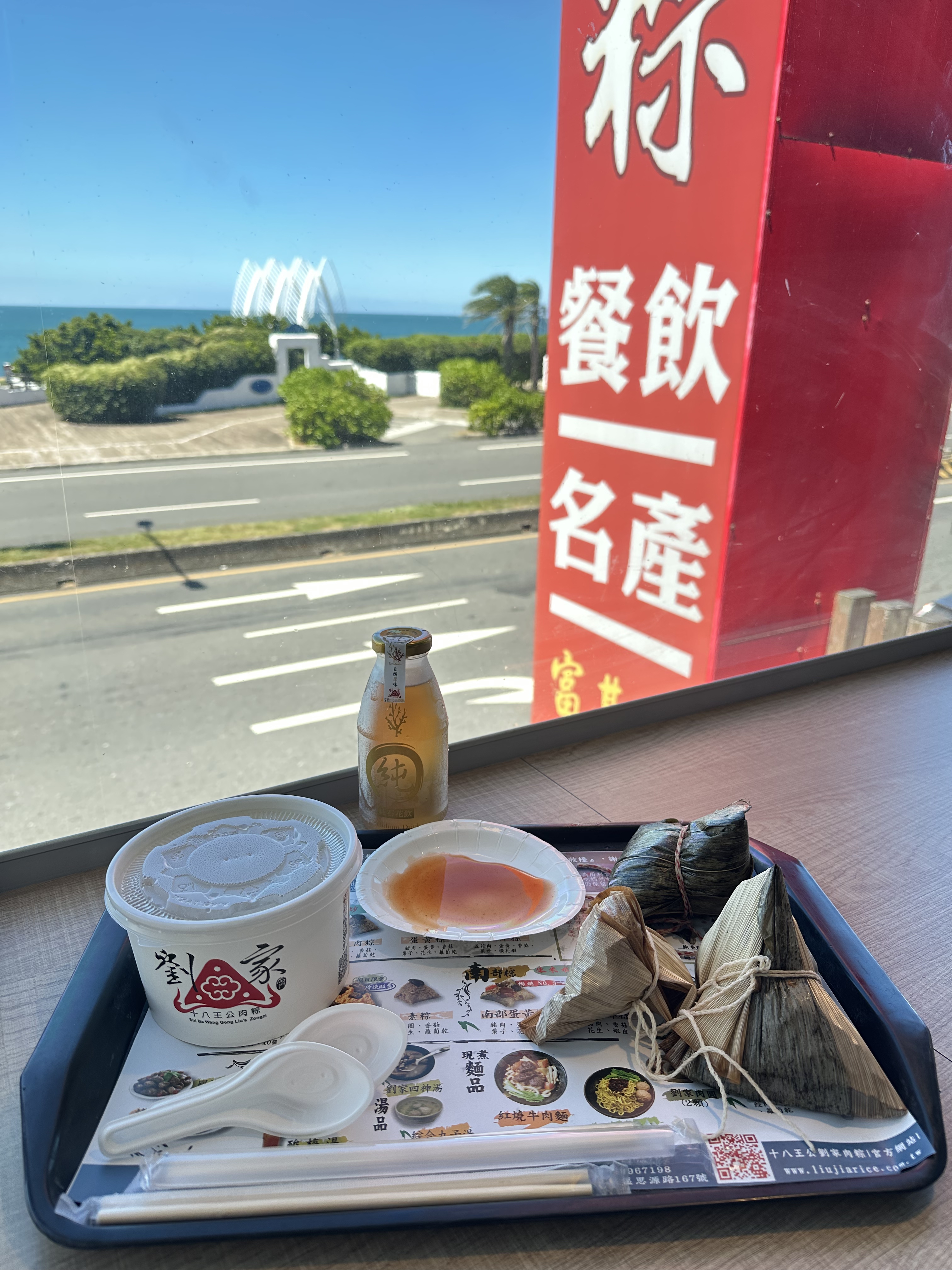 南部粽、小肉粽、招牌粽、冰糖石花凍飲、劉家四神湯、石門婚紗廣場 (前景)