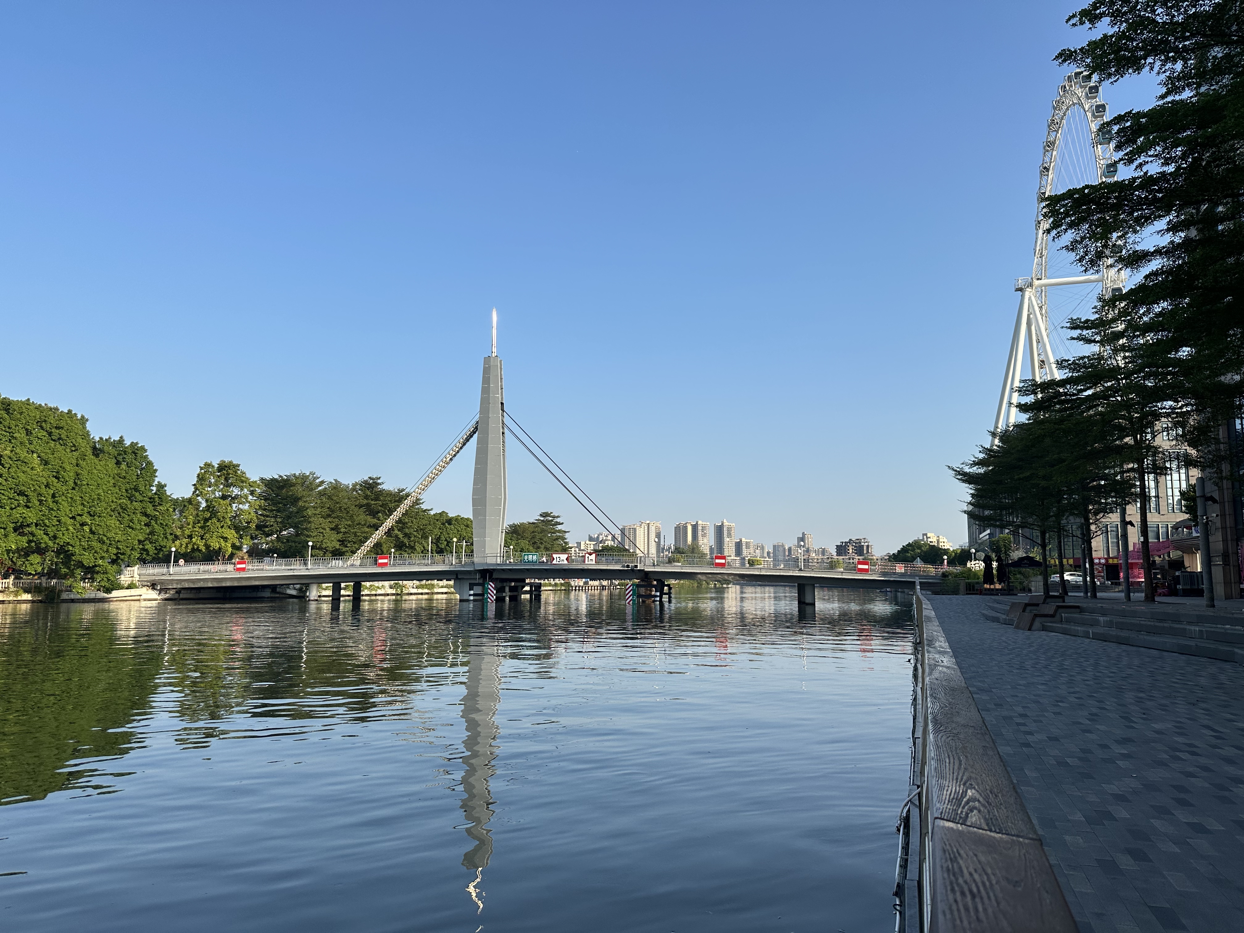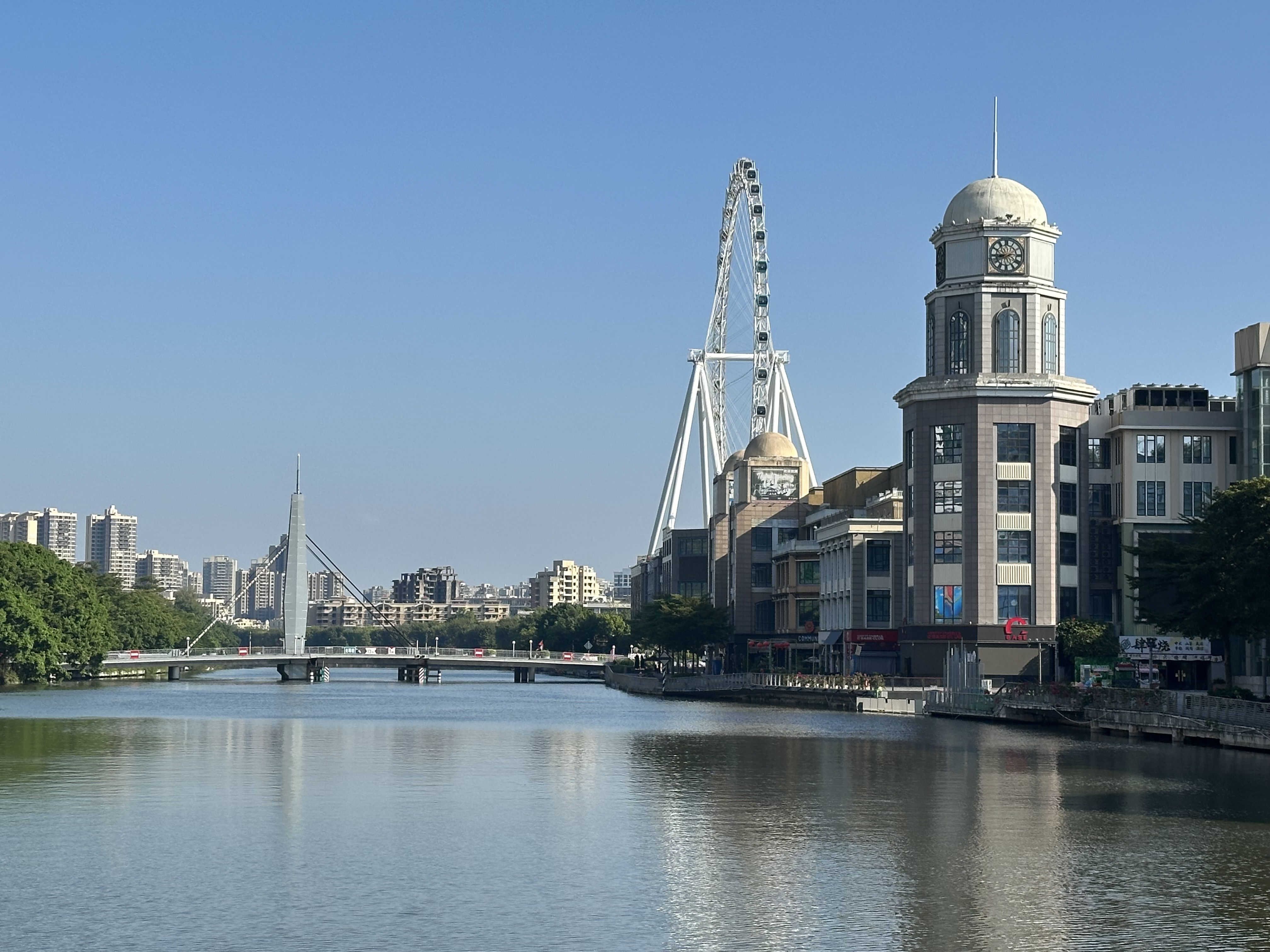 岐江橋北看、鐘樓、中山興中廣場摩天輪、光明橋