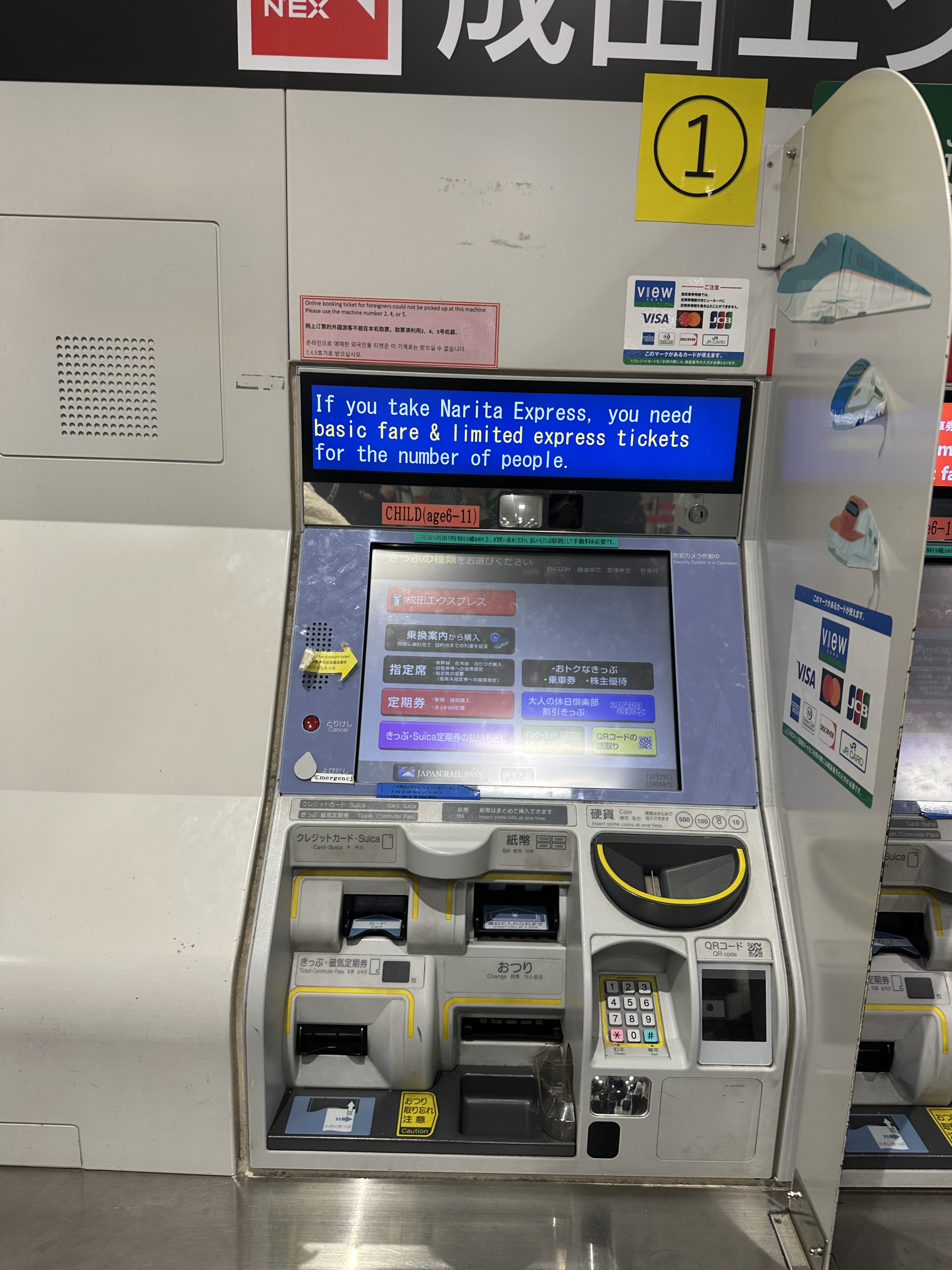 成田特快Narita Express售票機