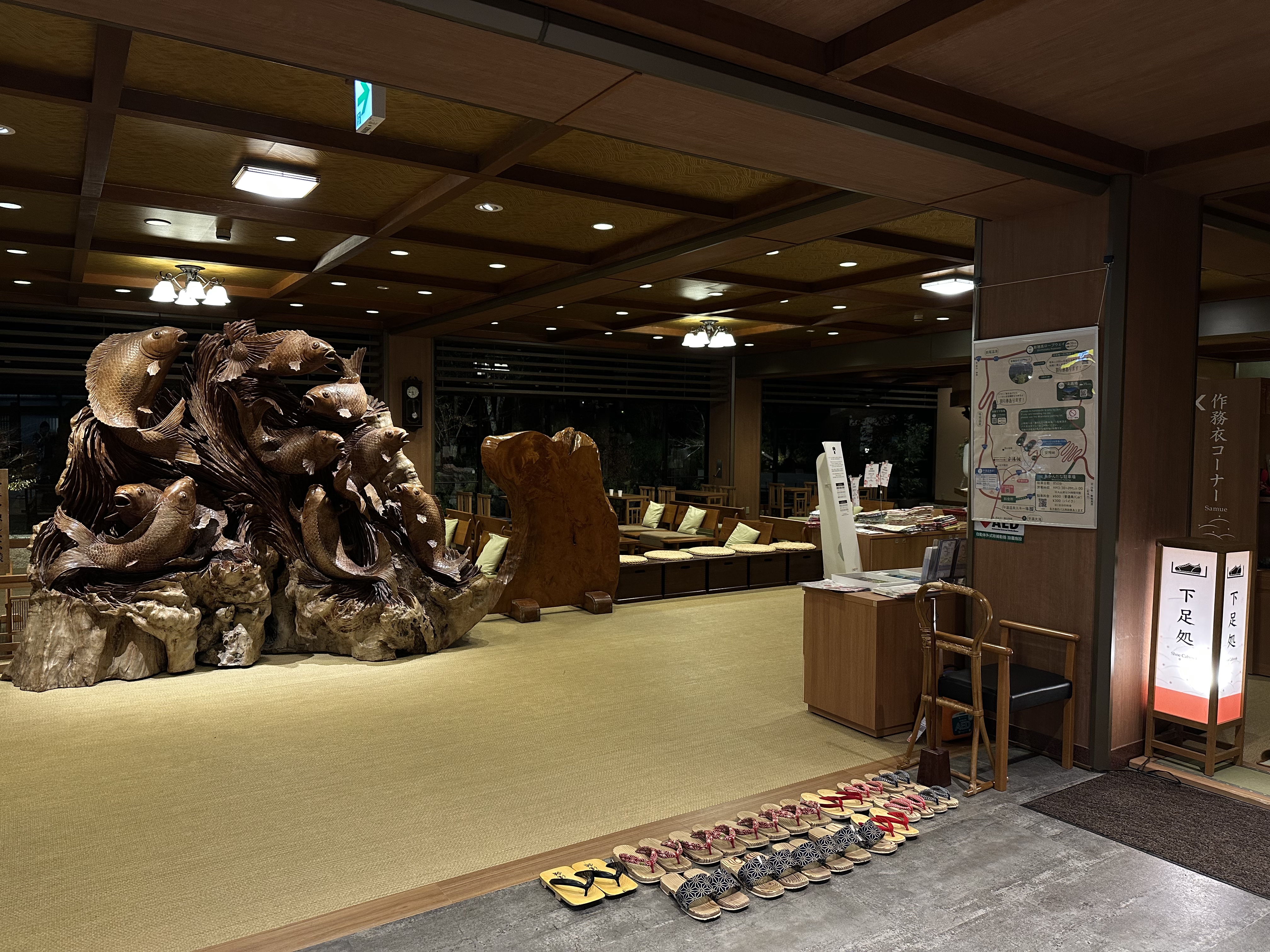 下足処、鯉魚木雕