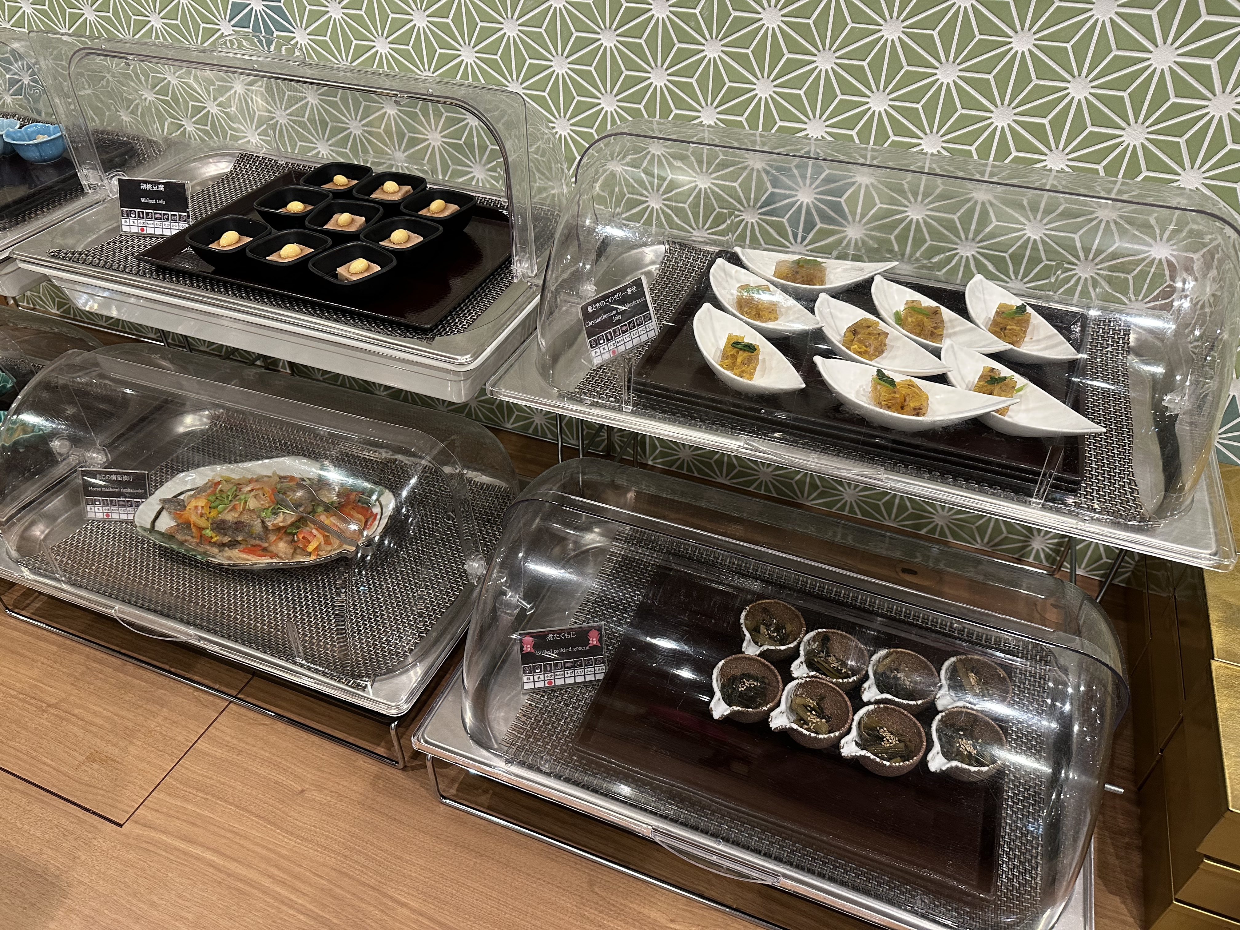 胡桃豆腐、 菊ときのこのゼリー寄せ、 おヒの南蛮漬け、 煮たくもじ