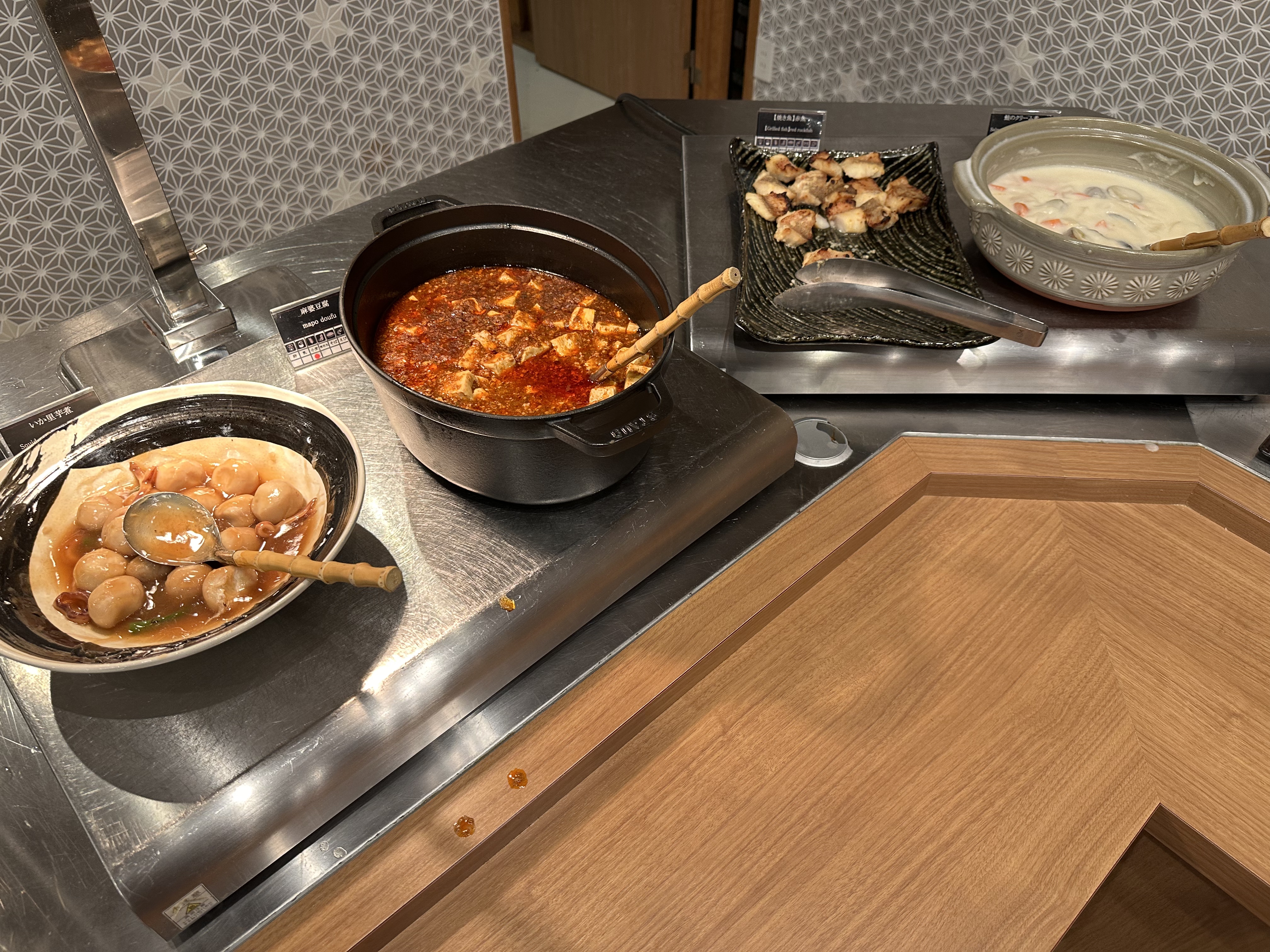 いか里芋煮、 麻婆豆腐、[焼き魚]赤魚、 鮭のクリーム煮