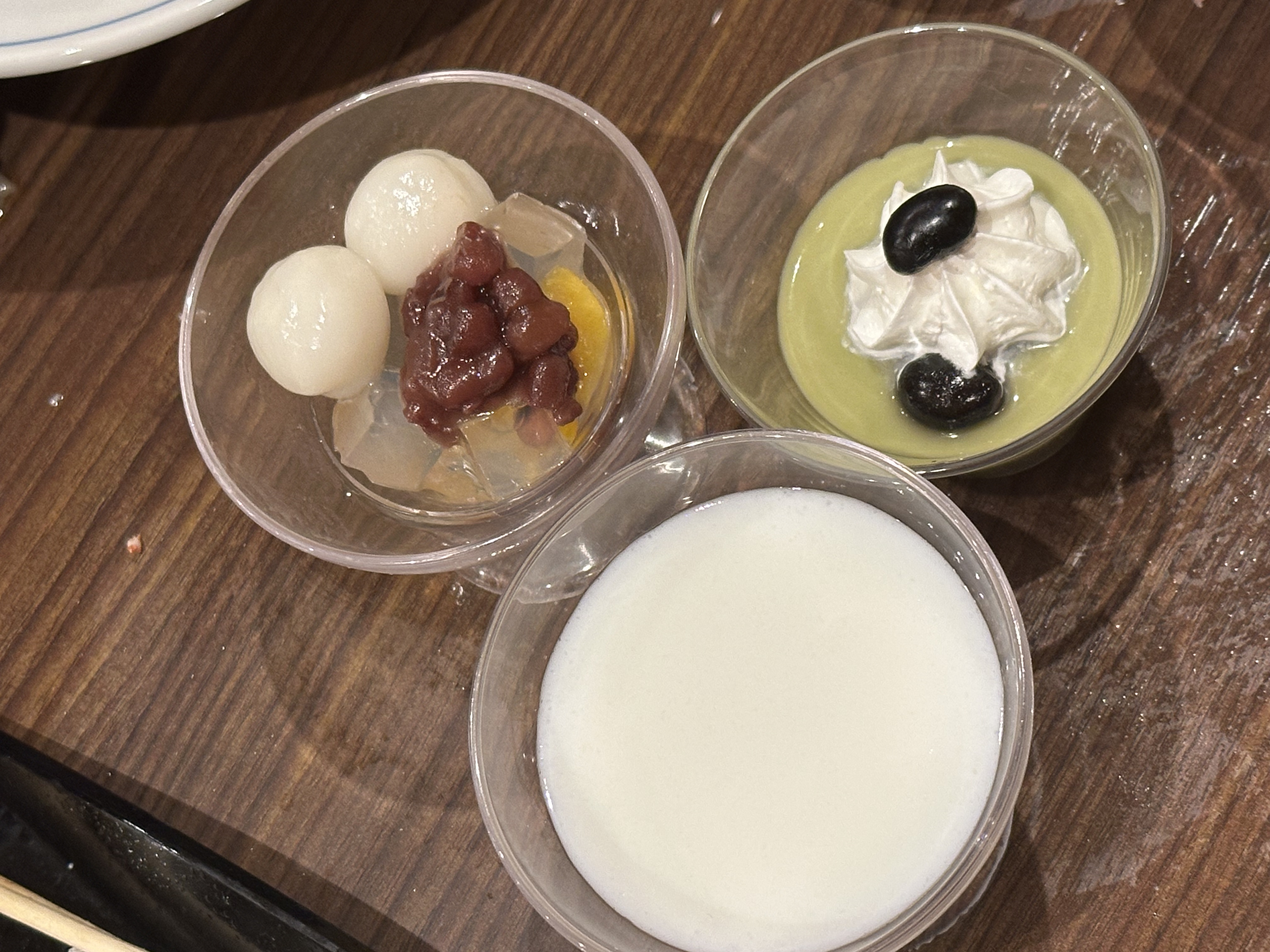 パンナコッタ、 フルーツ みつ豆、 抹茶プリン