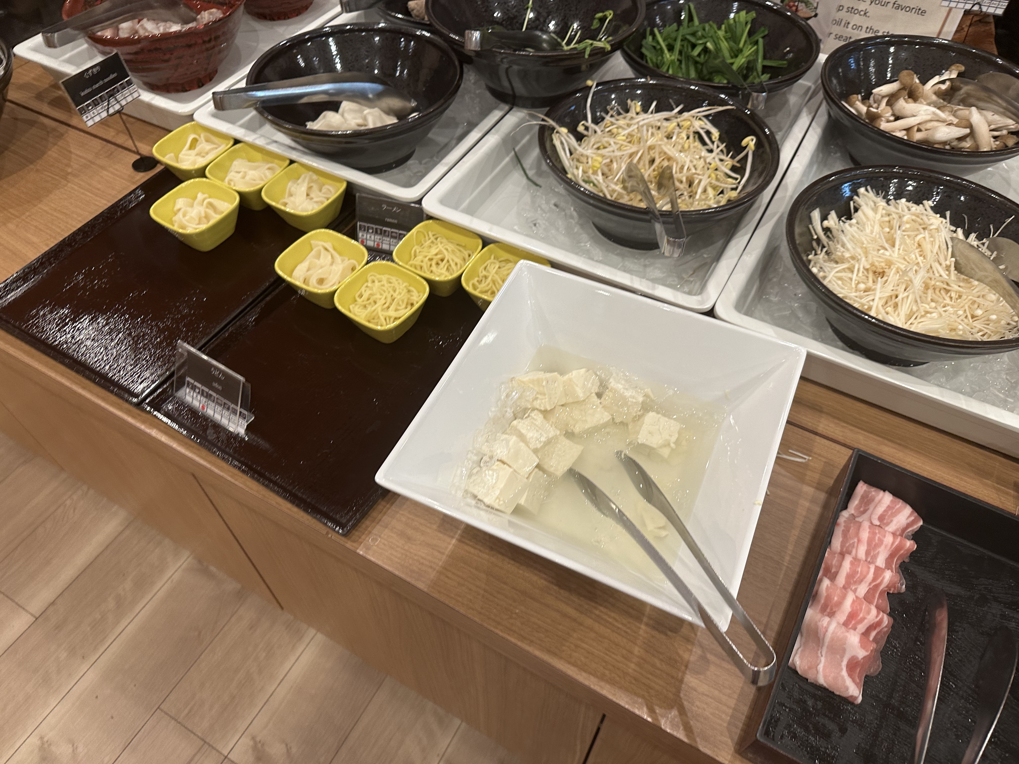 くずきり、ウーメン (麵條)、豆腐、火鍋牛肉片