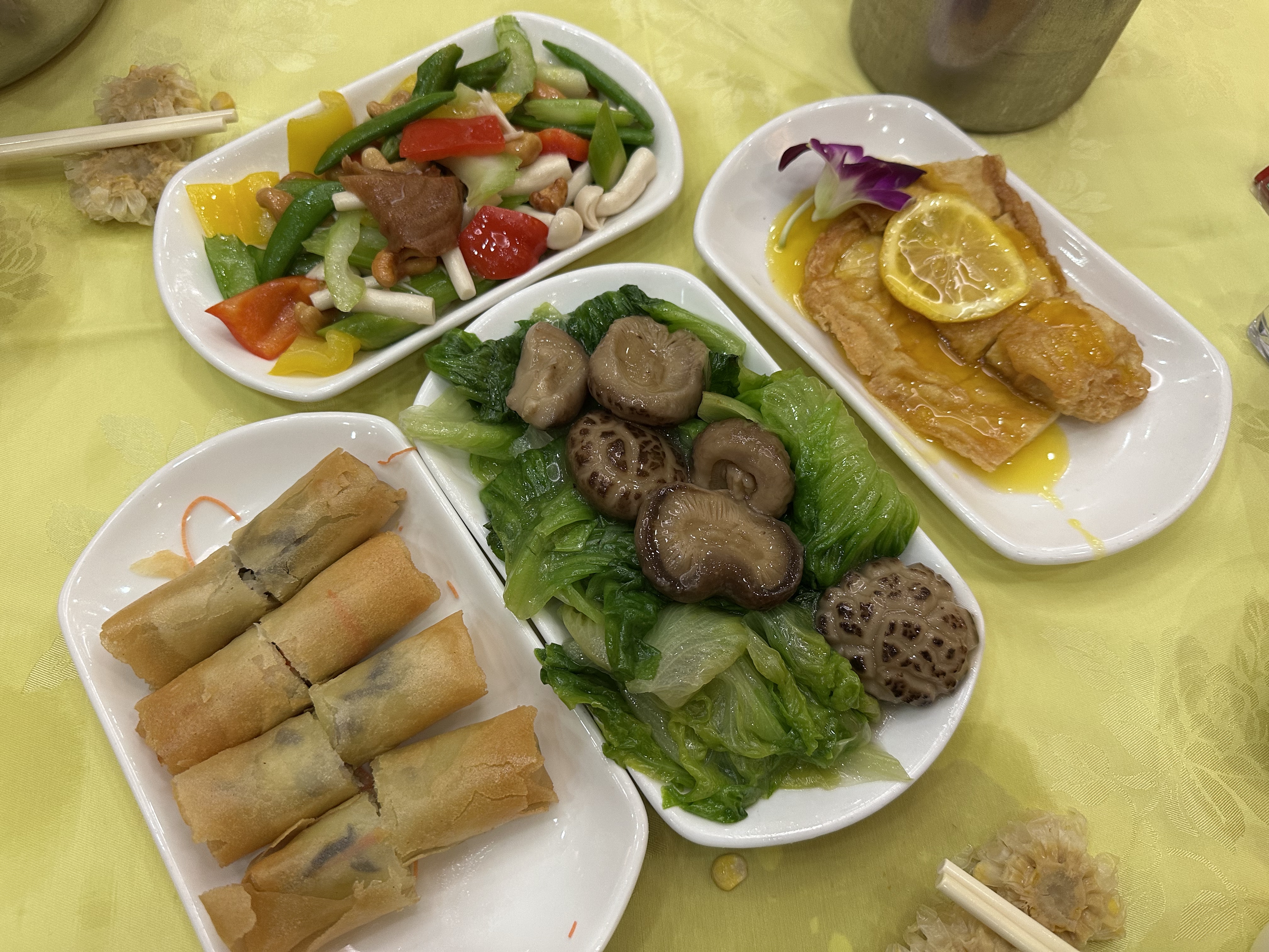 脆皮春卷 、碧綠如意炒 、花菇扒時蔬 、西檸鮮竹片