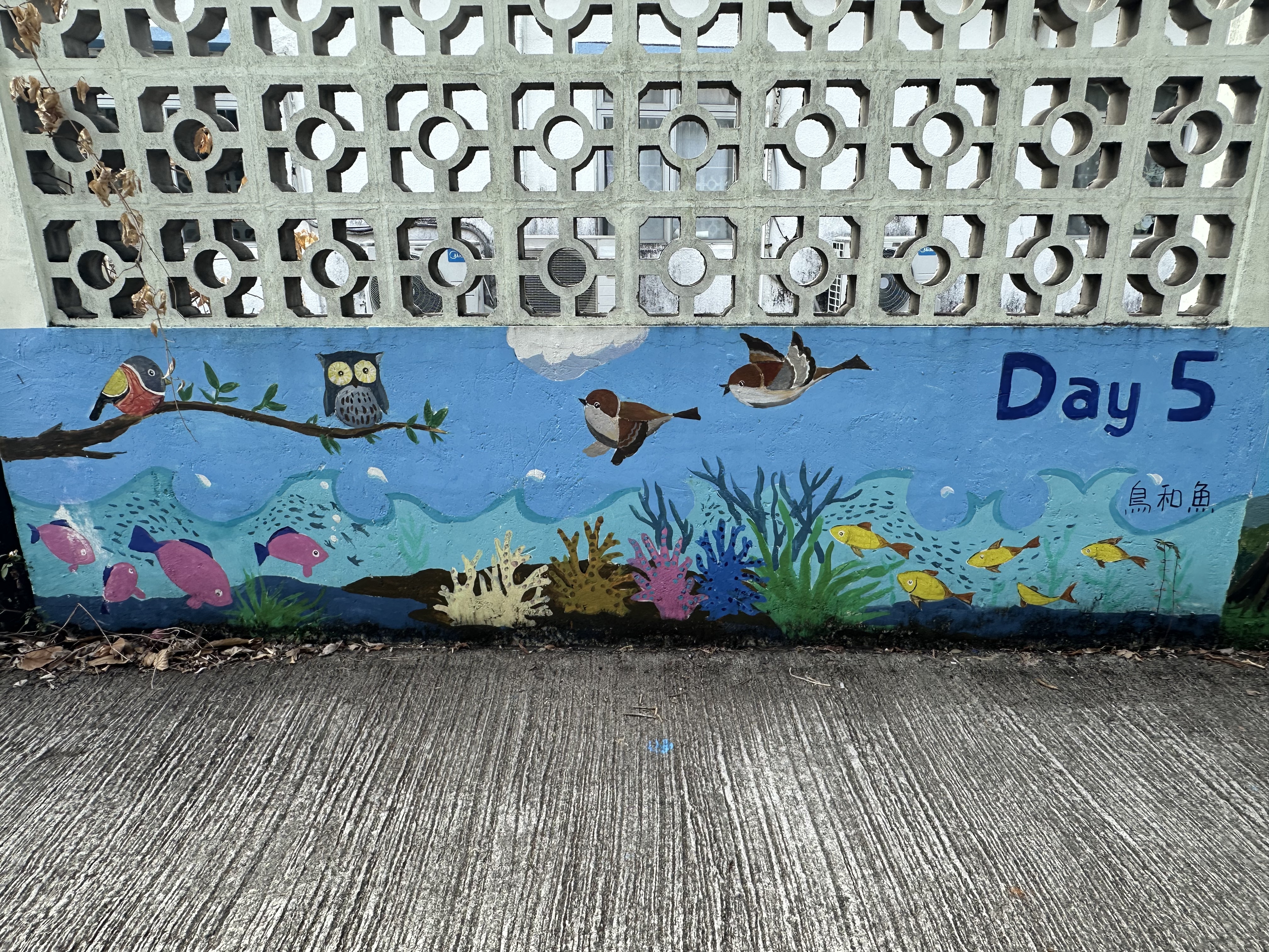 壁畫《Day 5 鳥和魚》