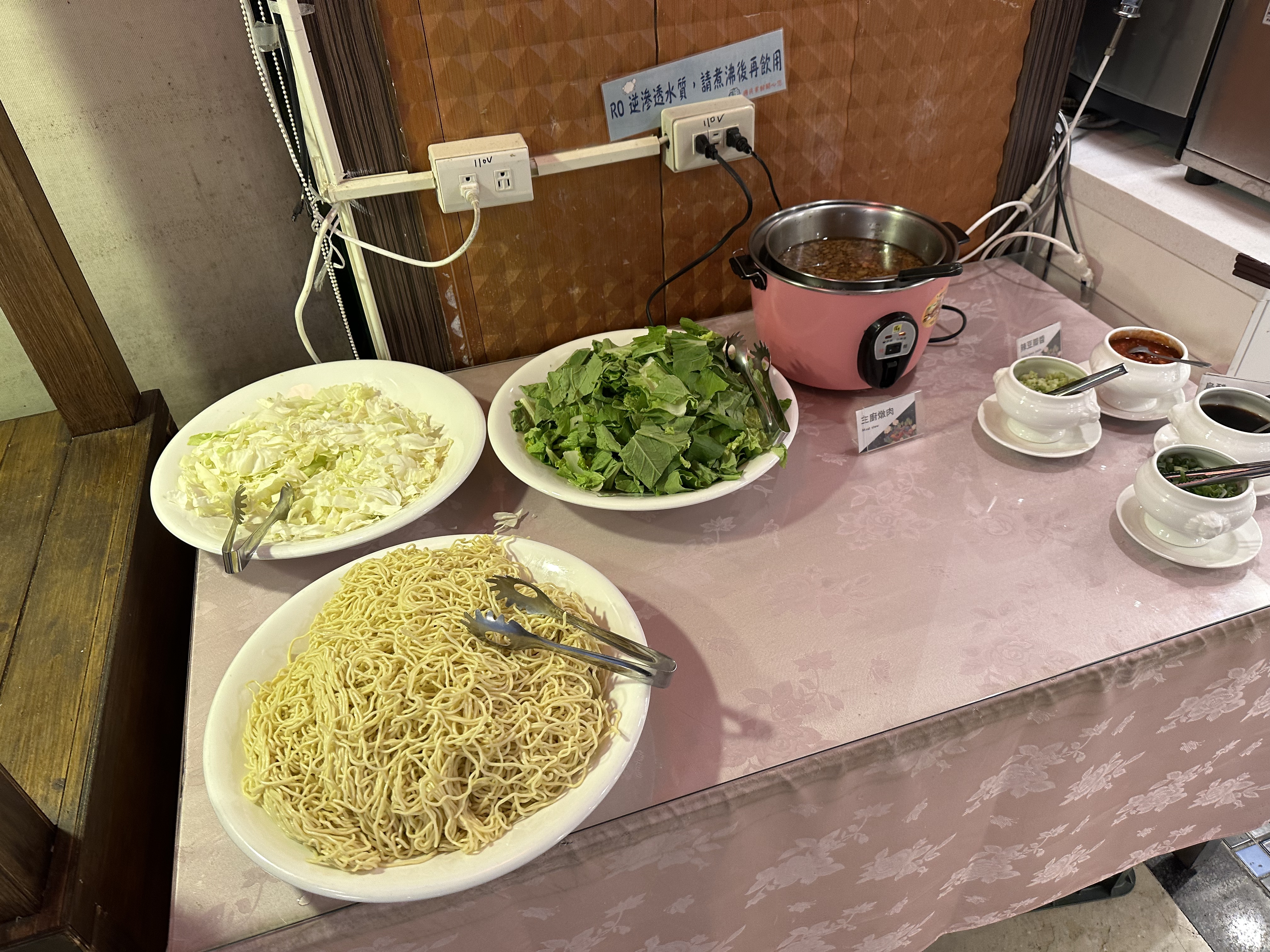 麵、蔬菜、主廚燉肉、醬料