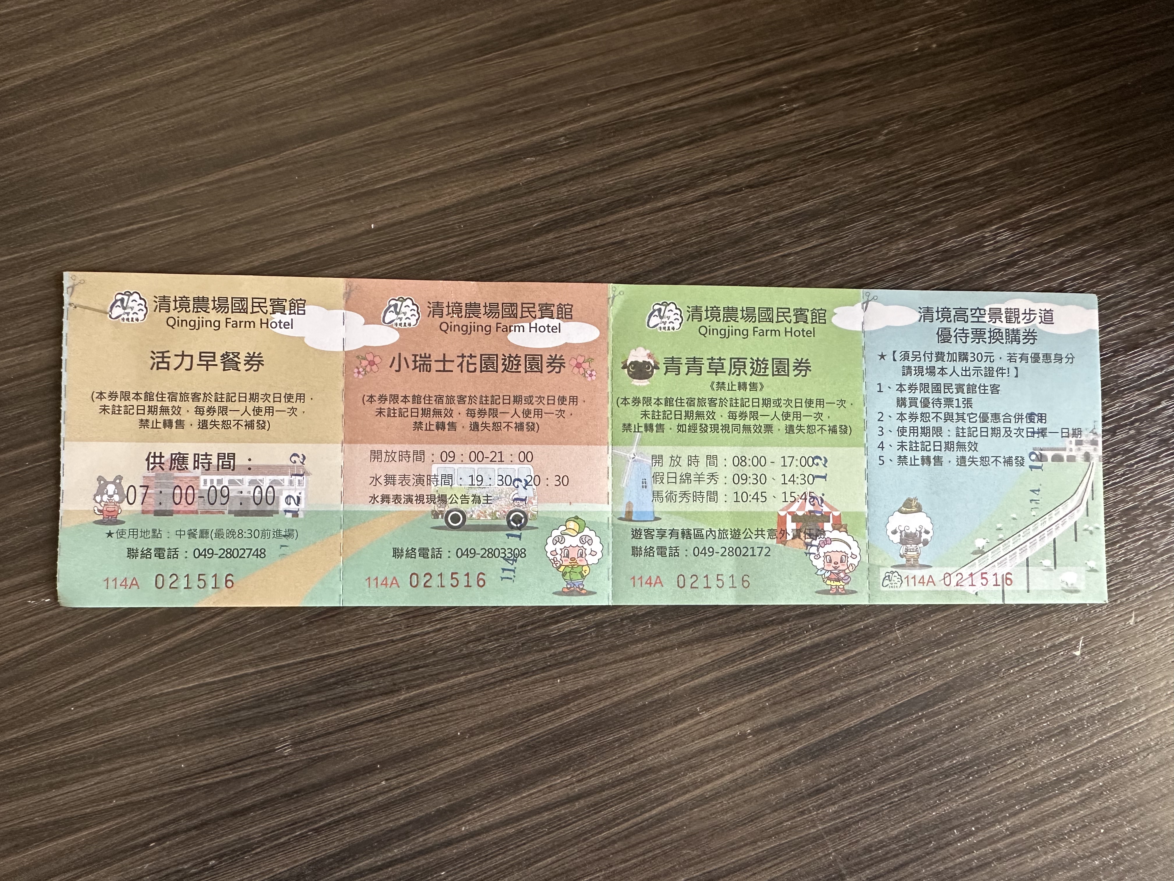 清境農場國民賓館: 活力早餐券、小瑞士花園遊園券、青青草原遊園券、清境高空景觀步道優待票換購券