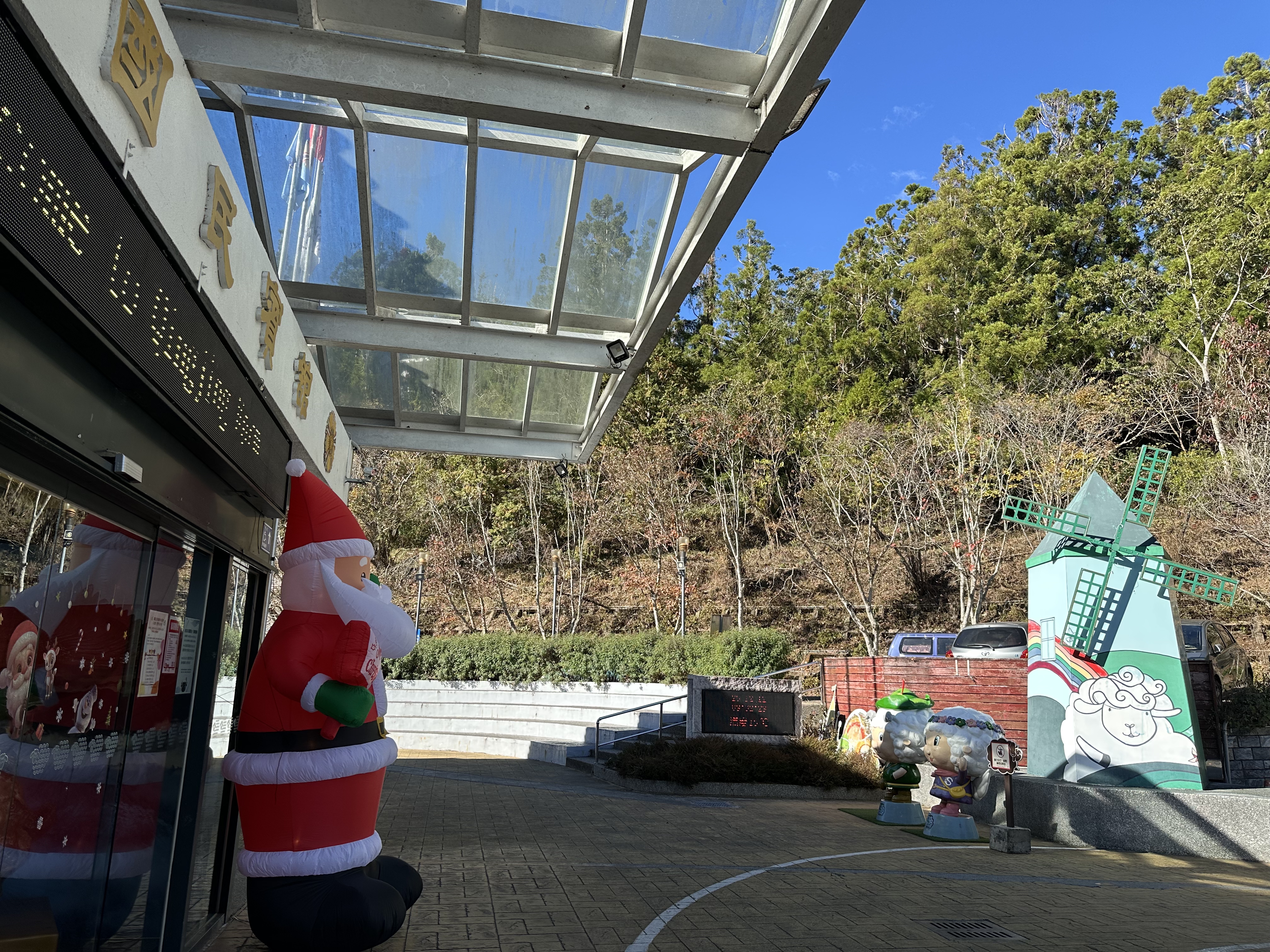 清境農場國民賓館前門: 聖誕老人、綿羊吉祥物、風車