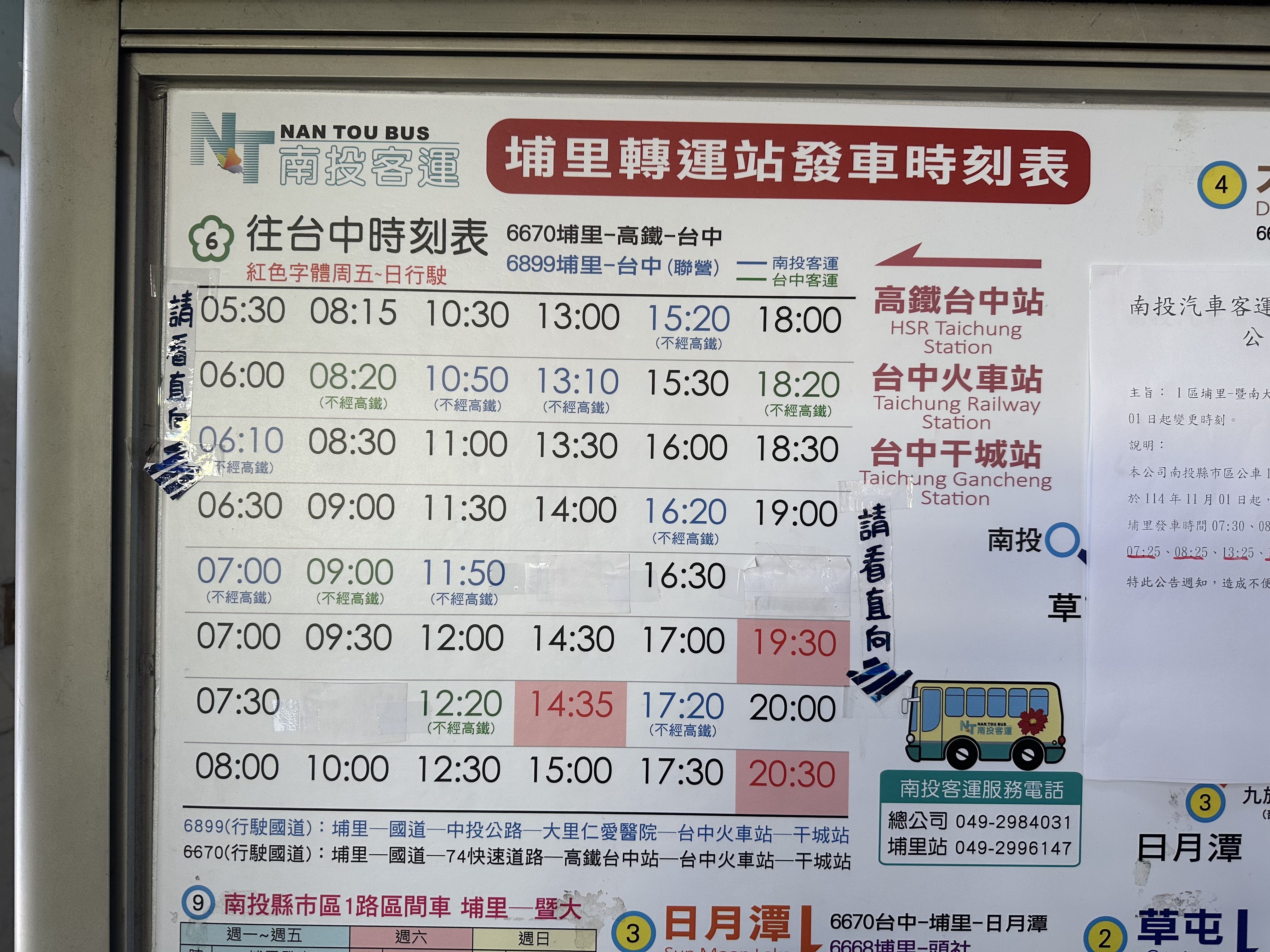 埔里轉運站: 往台中發車時刻表