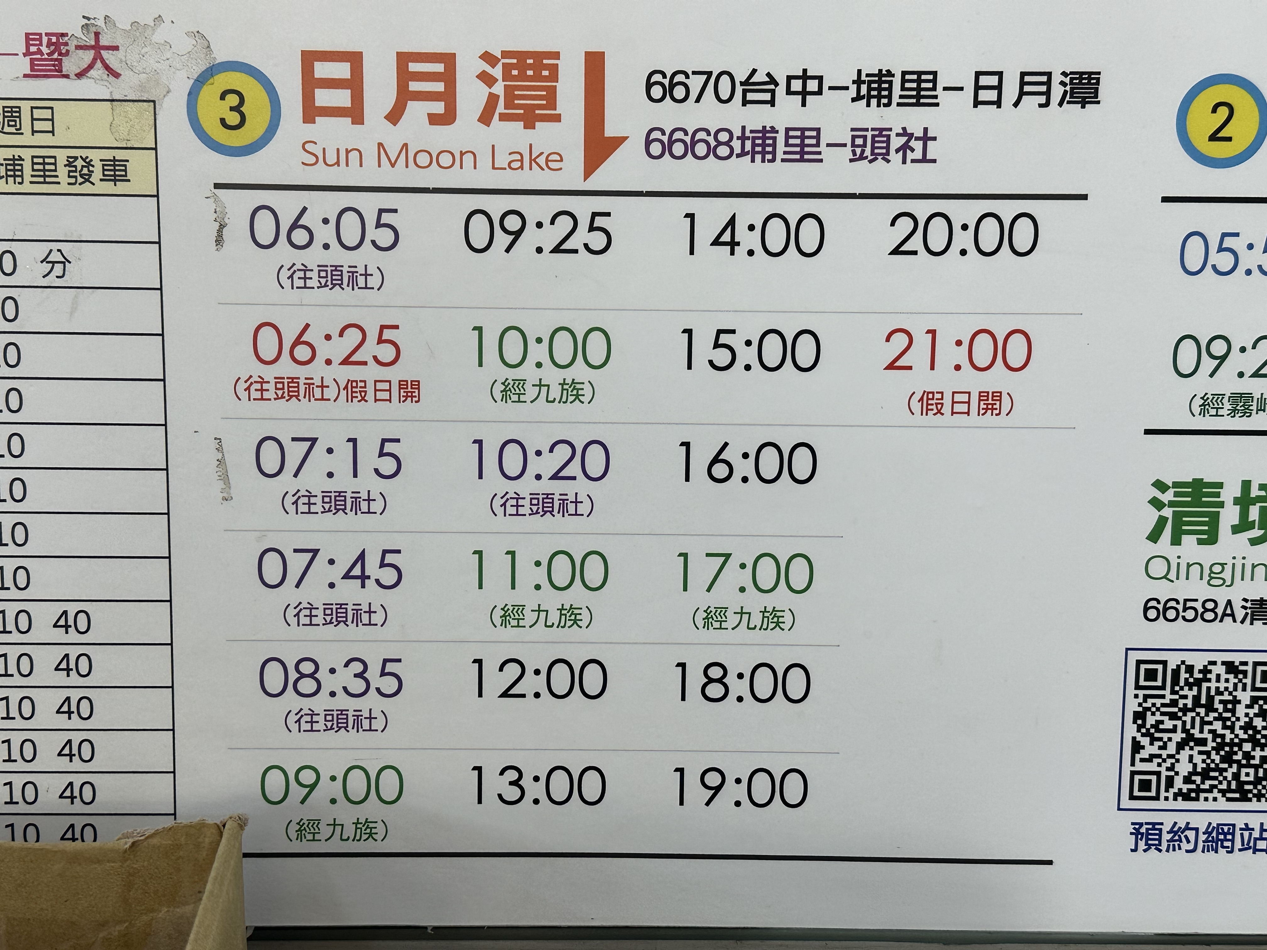 往日月潭發車時刻表