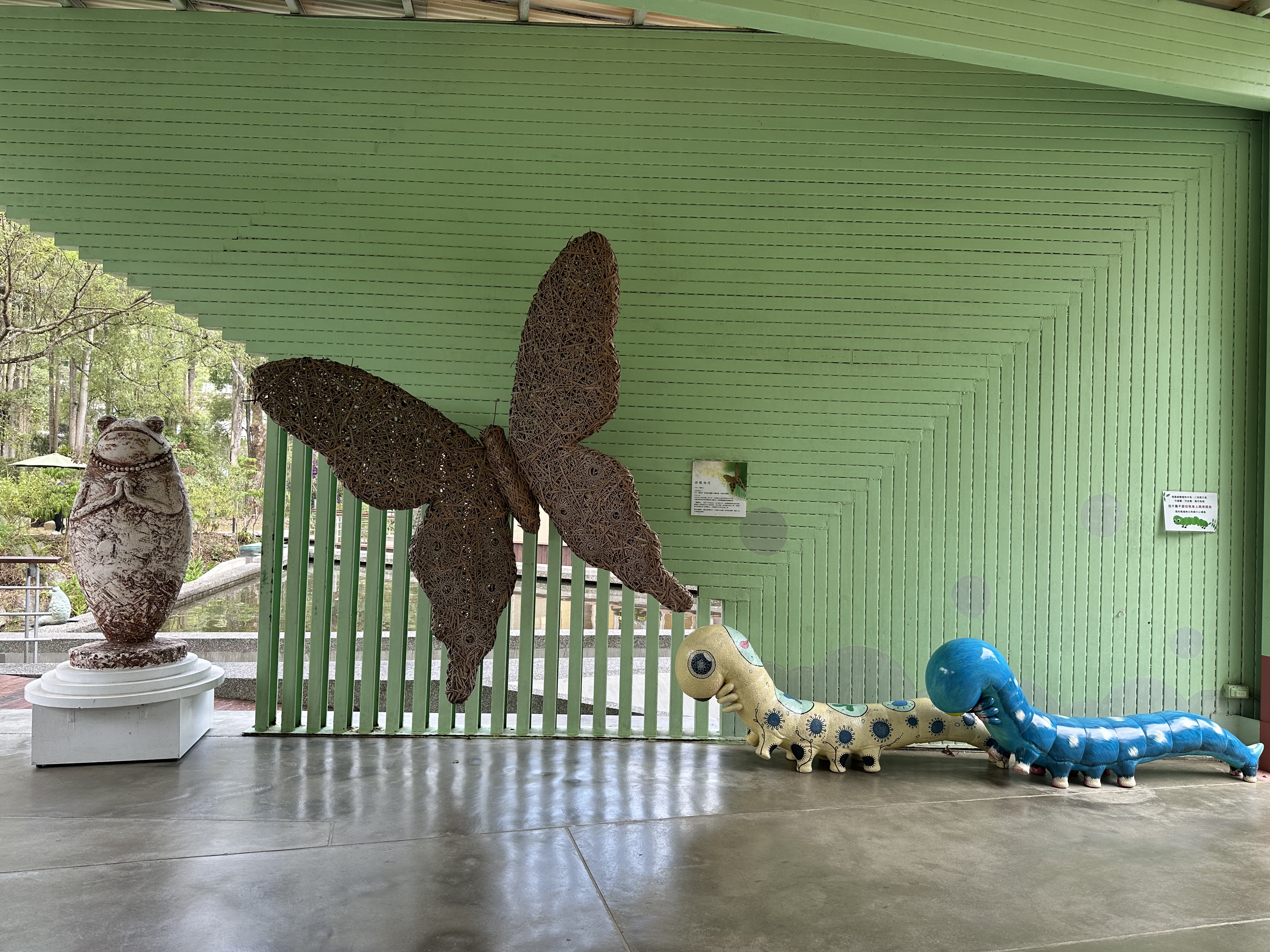 平安蛙、《夢蝶飛花》(作者:蘇素任)、「埔里蝴蝶風」藝術裝置
