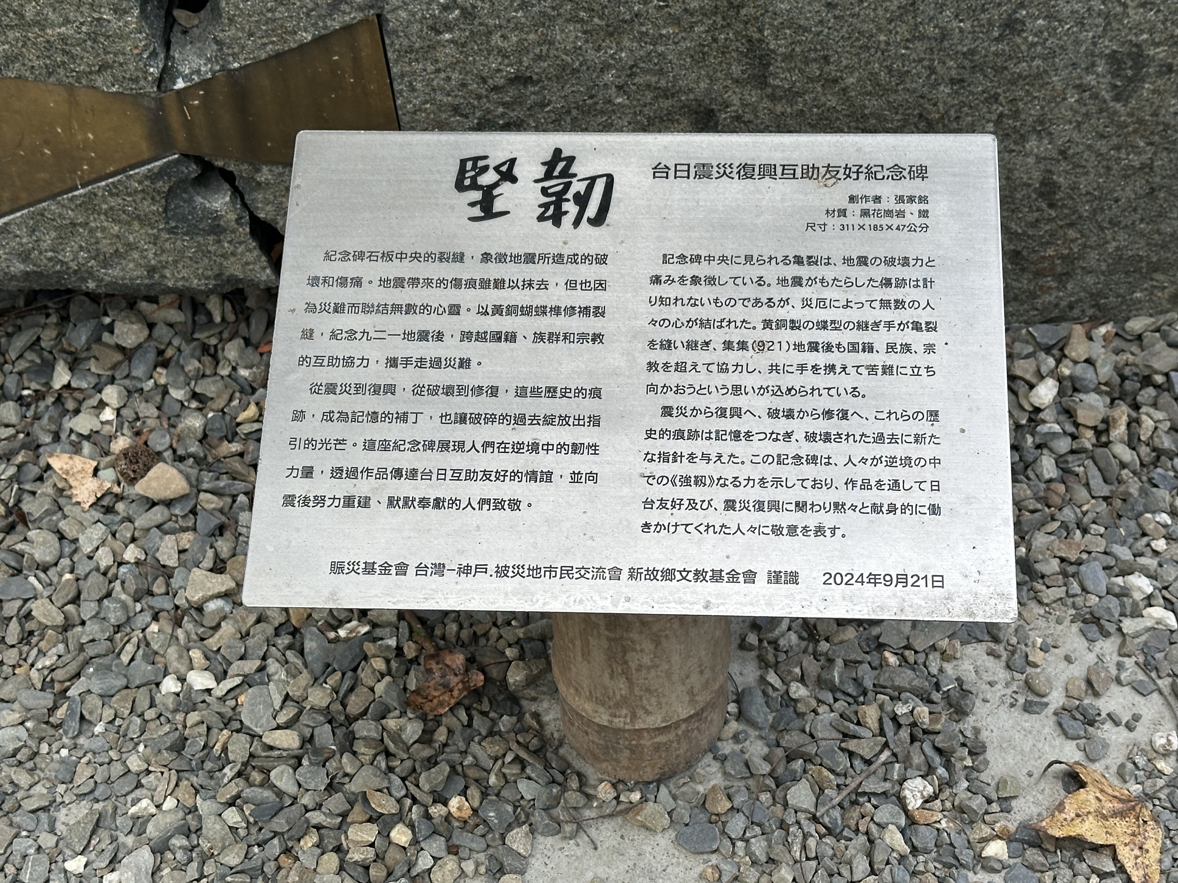 《堅韌》台日震災復興互助友好紀念碑,張家銘
